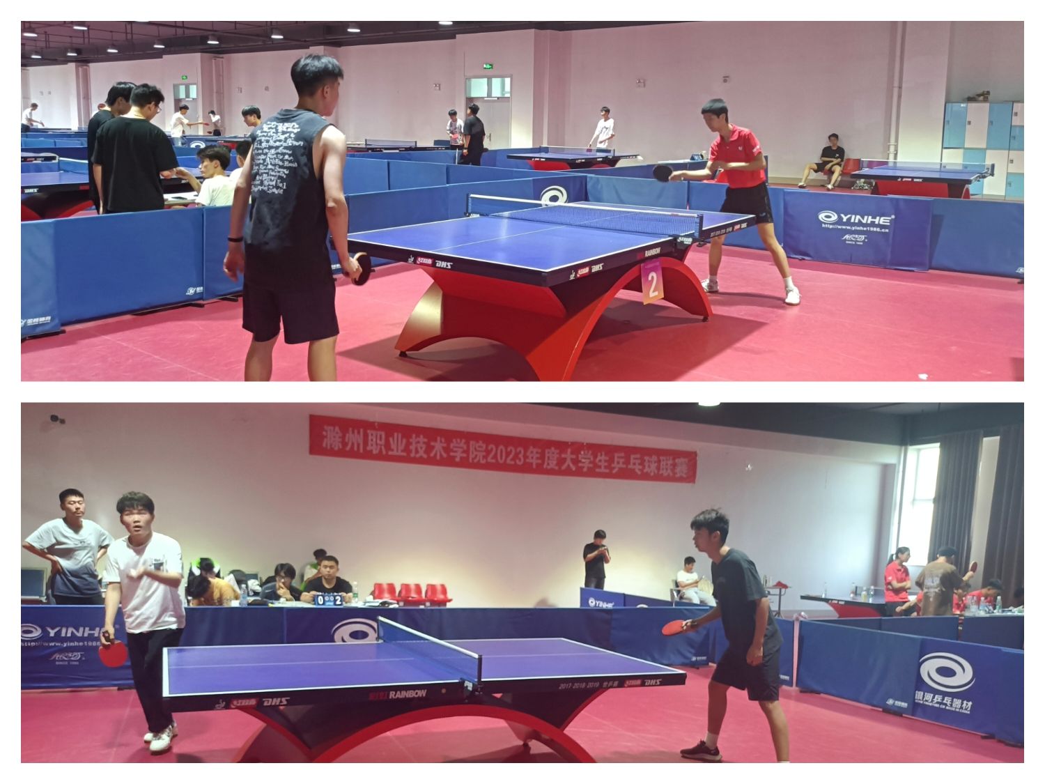 本次比赛分男双、女双两个部分进行比赛。选手都秉持着“友谊第一,比赛第二”的运动精神展开激烈比赛。各位选手精心排阵、相互团结配合。一展运动风采,选手们敏捷的身手、娴熟的技巧、激烈的扣杀,精湛的球技让比赛精彩纷呈,高潮迭起,现场观众掌声、喝彩声和欢呼声此起彼伏,热闹非凡。最后建筑工程学院在男子、女子团体赛中荣获第二名。