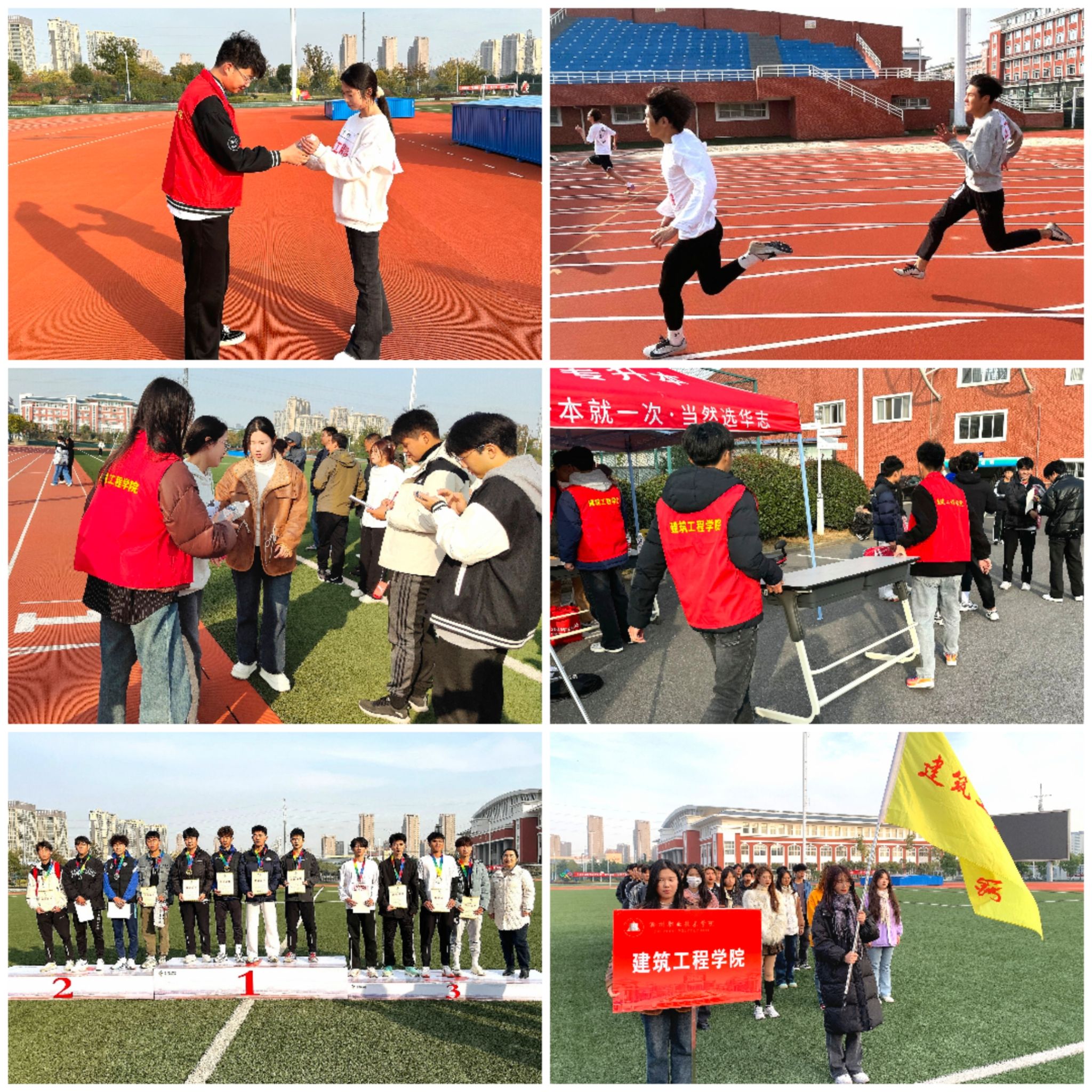 在运动会开始前志愿者们给建筑工程学院的参赛人员分发物品,接着志愿者们从场地、物资、餐饮、通信信号、医疗保障等方面进行了周密安排和责任分工。提前与各相关部门进行沟通协调,全面考虑到各项比赛所需,制定出详细的后勤保障方案,以确保运动会的顺利进行。在比赛开始期间,“向阳花”志愿服务队关心每位同学的身体状况和比赛情况,维护建筑工程学院的秩序,时刻准备着为建筑工程学院的运动员们服务。在运动会结束之后,志愿者们仍然站好最后一班岗,收拾好物品,整理好会场,保持整洁美好的校园。