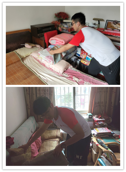 小分队成员与老人交流谈心,听老人述说自己过去的故事,并询问了老人的日常生活起居和身体健康状况等,帮助老人们做家务打扫卫生。用实际行动给老人送去快乐。