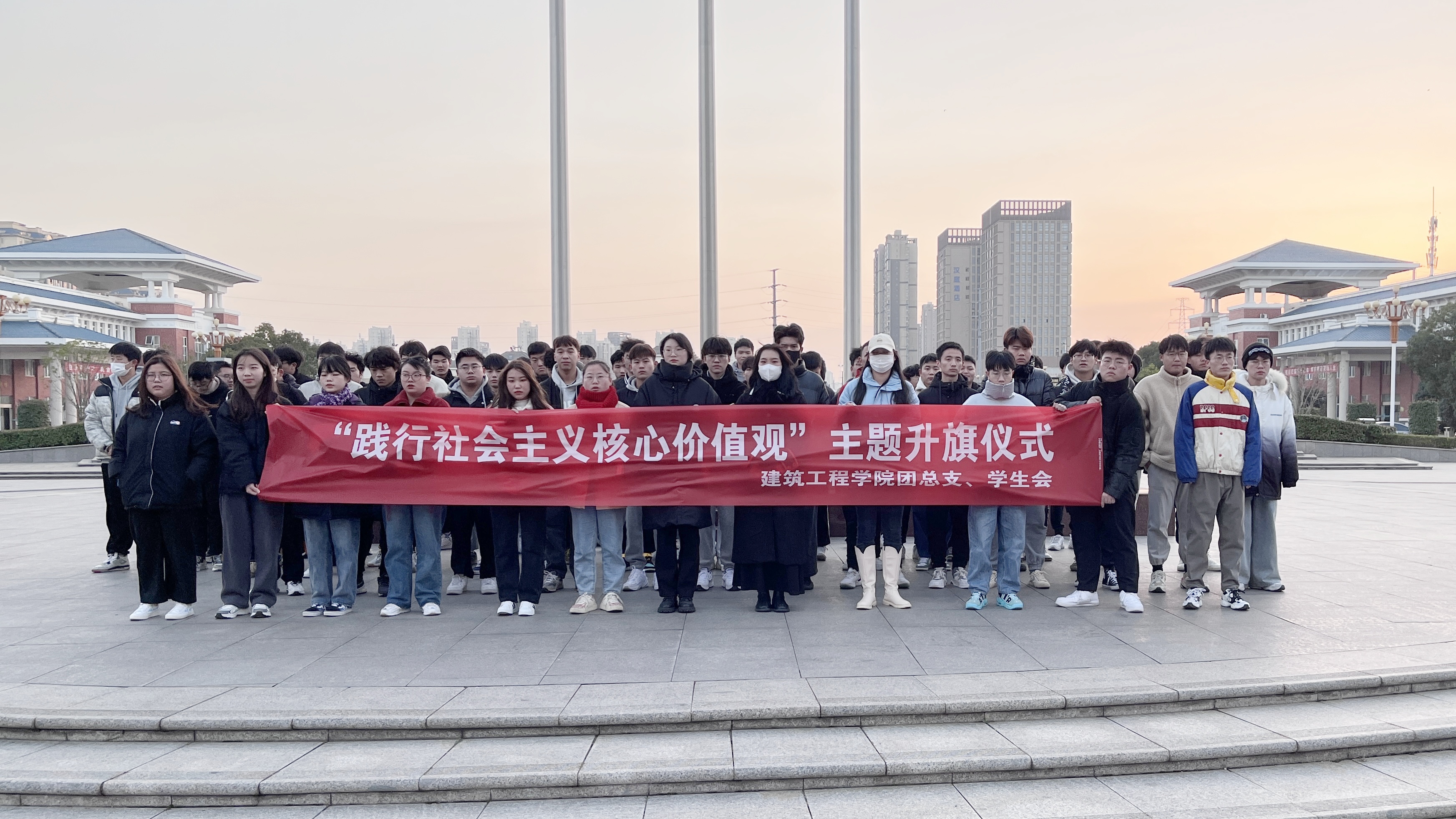 为深入贯彻习近平新时代中国特色社会主义思想,团结带领广大团员青年大力培育和践行社会主义核心价值观,汇聚同心共筑中国梦的精神动力,12月17日清晨,建筑工程学院团总支、学生会组织青年学子在综合楼前广场举行举行“践行社会主义核心价值观”主题升旗仪式暨“国旗下的讲话”活动。