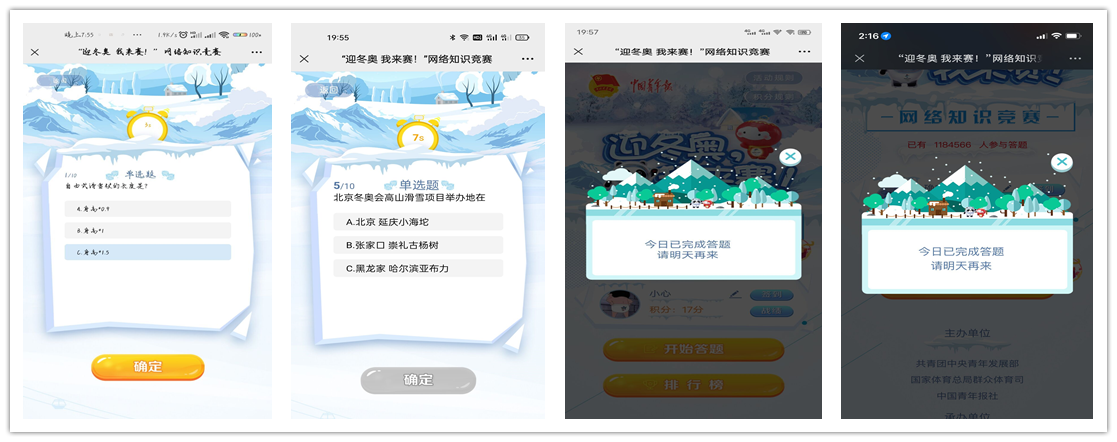 活动中,青年们一起了解冬奥、走进冬奥、参与冰雪运动。“只要我们每个人为梦想奋斗献力,中国梦就会实现……”虎年伊始奥运圣火再次在北京点燃双奥之城凝聚全世界的目光和期待,参与“迎冬奥,我来赛”答题,建工青年与冬奥健儿们一起迎接冰雪盛宴!
