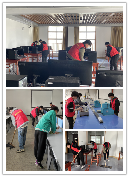 活动进行时,大家分工合作,相互协作,打扫细致,认真,成为实训馆里一道亮丽的风景线。经过“向阳花”志愿者的辛勤劳动,实训馆内机房和实验室的每个角落都变得整洁干净、焕然一新。