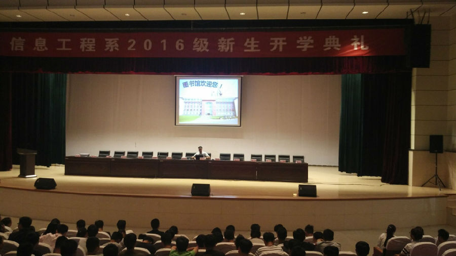 为帮助2016级新生尽快熟悉图书馆的馆藏资源和服务内容,2016年9月12日—9月13日,图书馆馆长苏和堂带领图书馆馆员刘涛老师、图书馆办公室王亭力老师深入各系,为我院七系3000余名2016级新生举办共计八场新生入馆教育讲座。