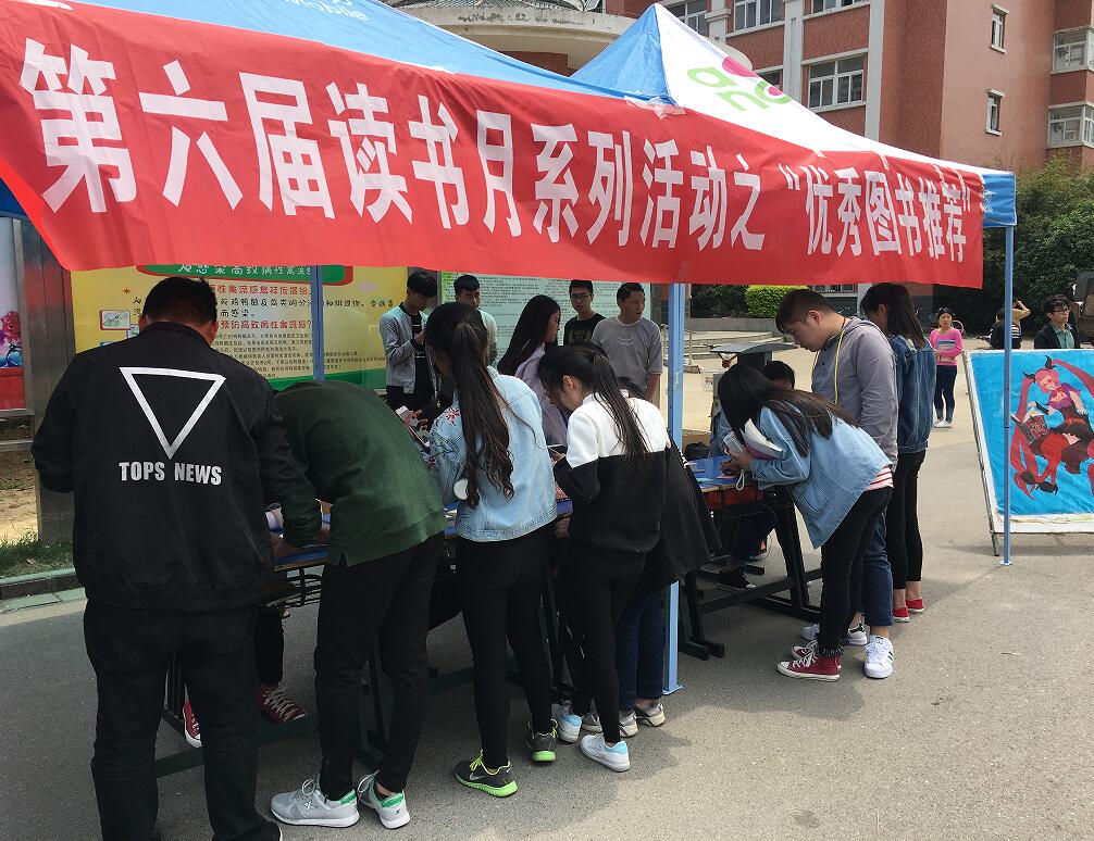 4月27日——28日,图书馆第六届读书月活动之“优秀图书推荐”在女生宿舍一号楼下举办。本次活动的目的是为了深入地了解Beat365学生对哪些方面的书籍需求量较大,从而让图书馆收藏更多学生们喜闻乐见的书籍,并形成全校爱阅读的良好风气。