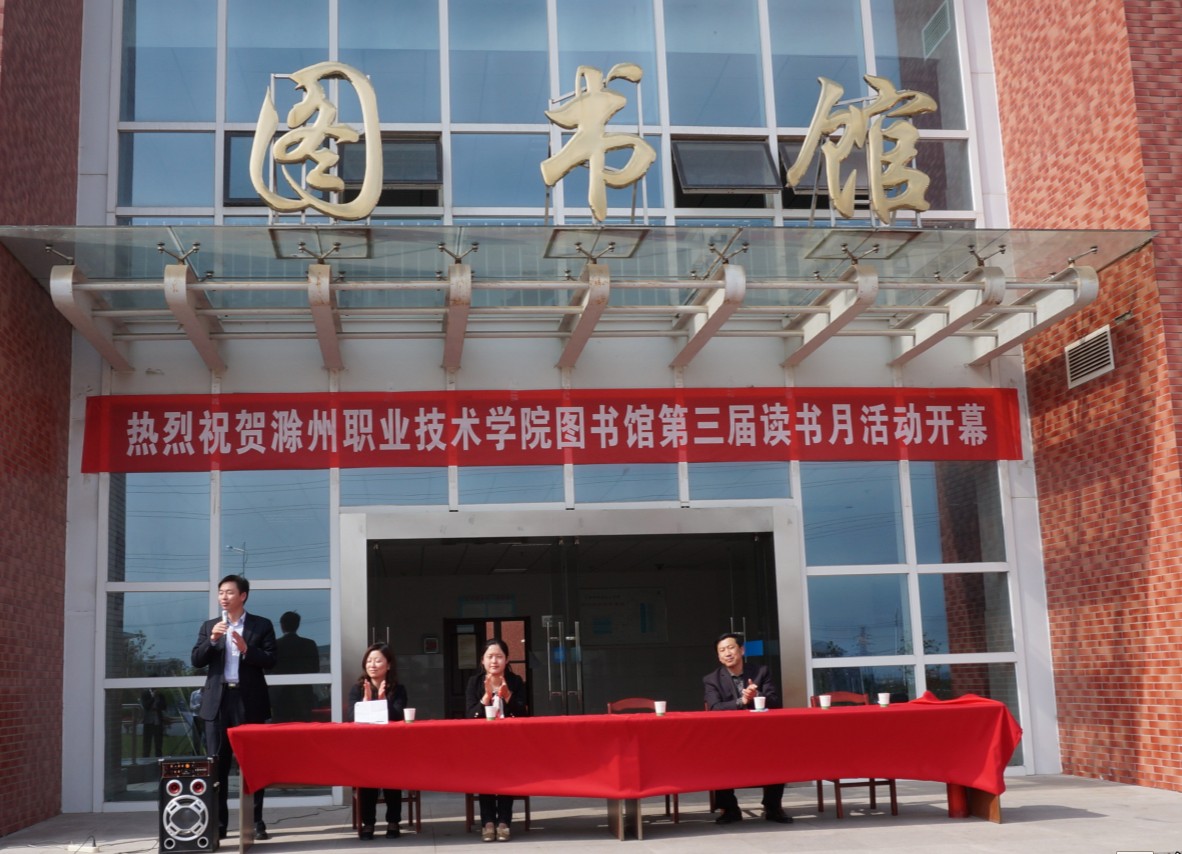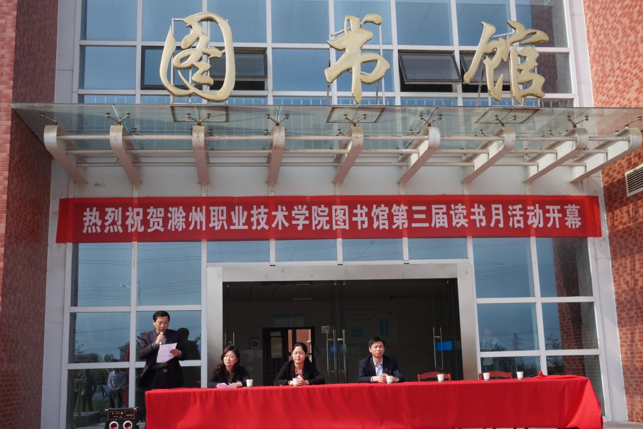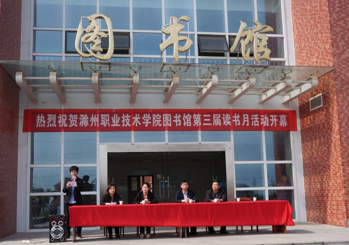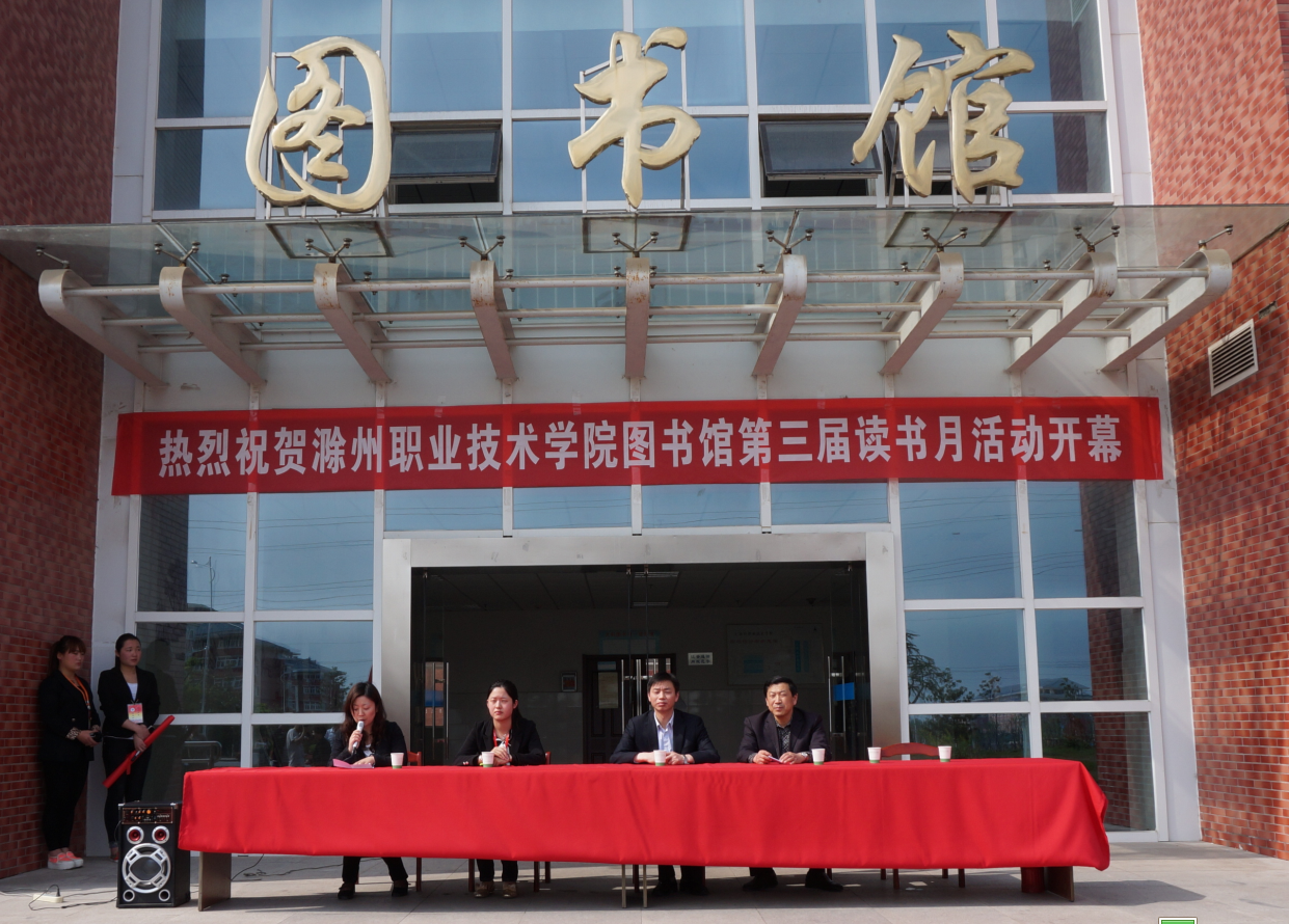 本届读书月活动于2014年4月23日下午三时隆重开幕。开幕式由团委书记王蓓蓓主持,院党委委员、副院长汪上、图书馆馆长苏和堂、中公教育滁州分销图书部主管徐聪出席仪式,馆内全体工作人员及各系部学生代表等上百余人参加。