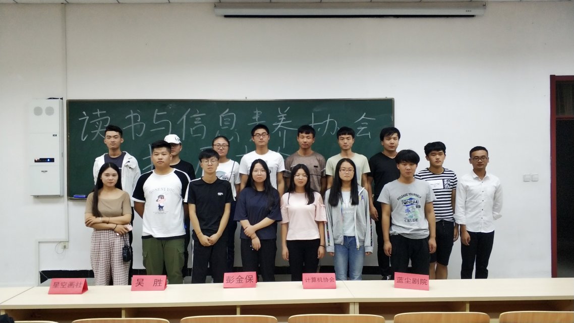 本次换届大会邀请了社联副主席彭金宝、社联组织部部长吴胜、社联组织部等干事、计算机协会负责人、星空画社负责人、蓝尘剧院负责人、读书与信息素养协会成员参加。