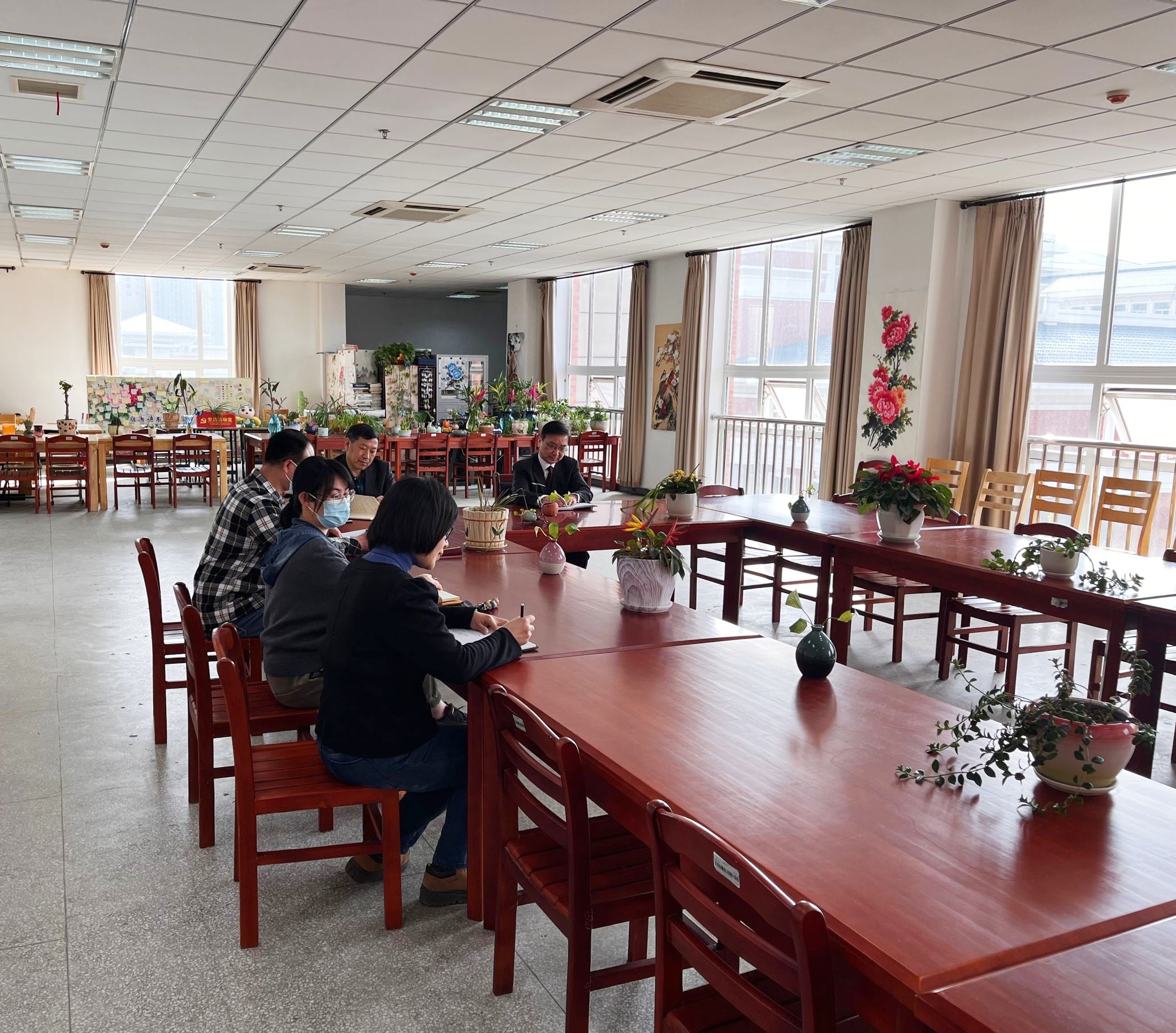 苏和堂首先从图书馆的空间建设、组织结构、内部管理、发展情况、今年工作计划、未来发展思路等方面作了汇报,然后对发展中存在的问题也作了客观陈述。王冬认真听取后指出,图书馆工作要立足现有条件,积极开拓思路,发挥创新精神,既要进一步加强科学化和规范化建设,完善自我,也要注意和其他高校图书馆学习交流。