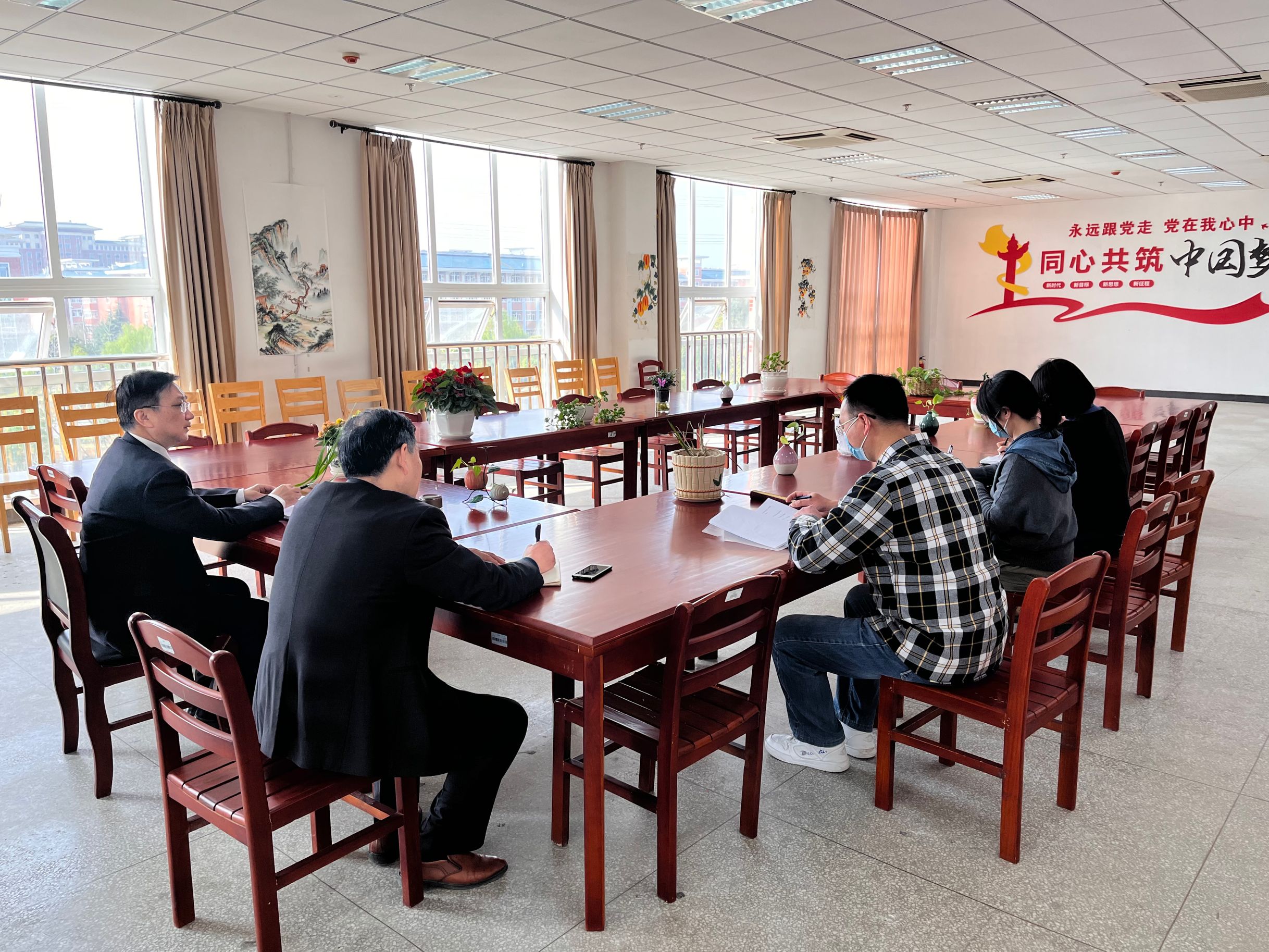 习近平总书记说:“图书馆是国家文化发展水平的重要标志,是滋养民族心灵、培育文化自信的重要场所。”3月15日上午,校党委委员、马克思主义学院院长王冬到图书馆调研指导工作。图书馆馆长苏和堂、资源建设科科长王亭力、流通阅览科科长张雯雯和刘涛陪同调研并参加了座谈。