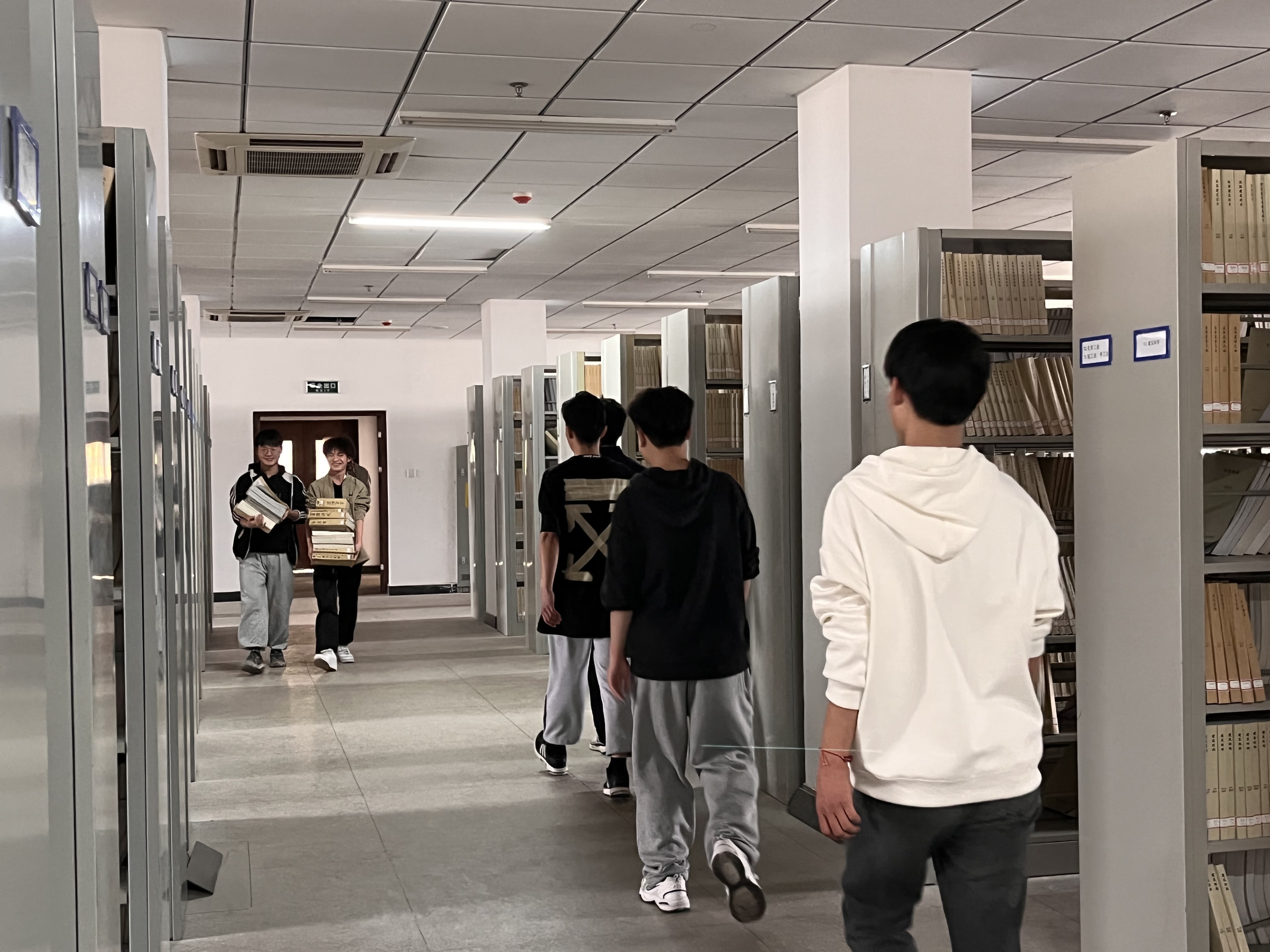 王老师耐心地讲解了过刊来源、分类、排架方式等很多知识后,指导同学们把流通部老师需剔旧的过刊堆放至指定地点,同时完成书架整理及场馆卫生清扫等工作,从而极大地美化了场馆环境。