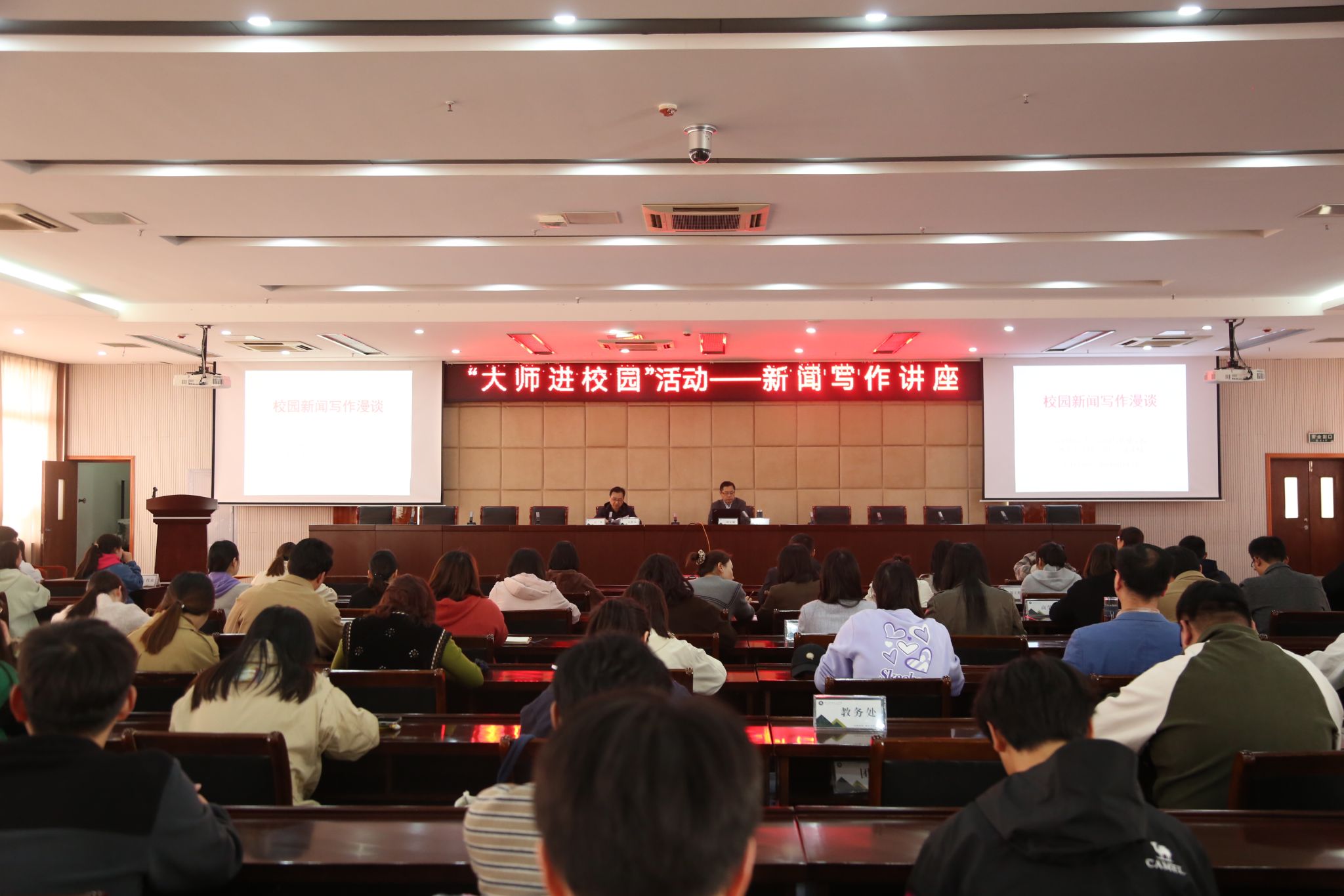 为促进学校宣传工作高质量发展,提升通讯员队伍讲好“滁职故事”水平,11月8日下午,学校邀请安徽师范大学图书馆馆长、新闻与传播学院博士生导师沈正赋教授来校作专题讲座。讲座在综合楼5楼报告厅举行,校党委委员、宣传统战部部长王冬主持讲座。图书馆馆长林文静,副馆长吴慧明,宣传统战部相关负责同志参加,各教学院部、各部门通讯员,各学院党总支、党支部宣传委员,部分学生代表聆听讲座。