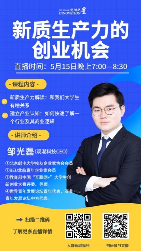 5月份“创客之星”将开展两场直播,欢迎广大学子观看。