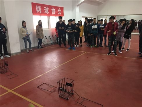 为了活跃学校氛围,提高同学们的竞争意识,丰富大家的课余时间。4月6日下午,在学院体育场形体房,网球协会举行了一场网球趣味运动会。 本次运动会共有5个趣味项目,“掷球入筐” “拍球接力”“双人夹球接力赛”“网球保龄球”“折返网球”。