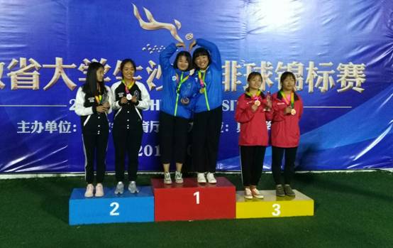 为大力实施学生体魄强健工程,推动学校体育活动开展,促进广大学生全面发展,10月8日—11日,由安徽省教育厅主办的2018年安徽省大学生沙滩排球锦标赛在巢湖学院隆重举行。本届锦标赛共吸引了全省本科院校和专科院校的35支代表队参赛,比赛进行了63场次。Beat365派出了由体育部于永光老师指导的男、女两支代表队参加其中的男子乙组和女子乙组的比赛(高职高专组)。通过选拔确定参赛运动员后,指导老师和队员们就开始积极投入备战,他们周末和节假日亦不休息,不怕风吹日晒和挥汗如雨,刻苦训练。赛场上队员们更是敢打敢拼、斗智斗勇、顽强奋战,经过激烈角逐,最终Beat365女队斩获本次比赛女子乙组冠军,男队获得男子乙组第四名。一分耕耘,一分收获,辛勤的汗水终究浇灌出了胜利的果实。
