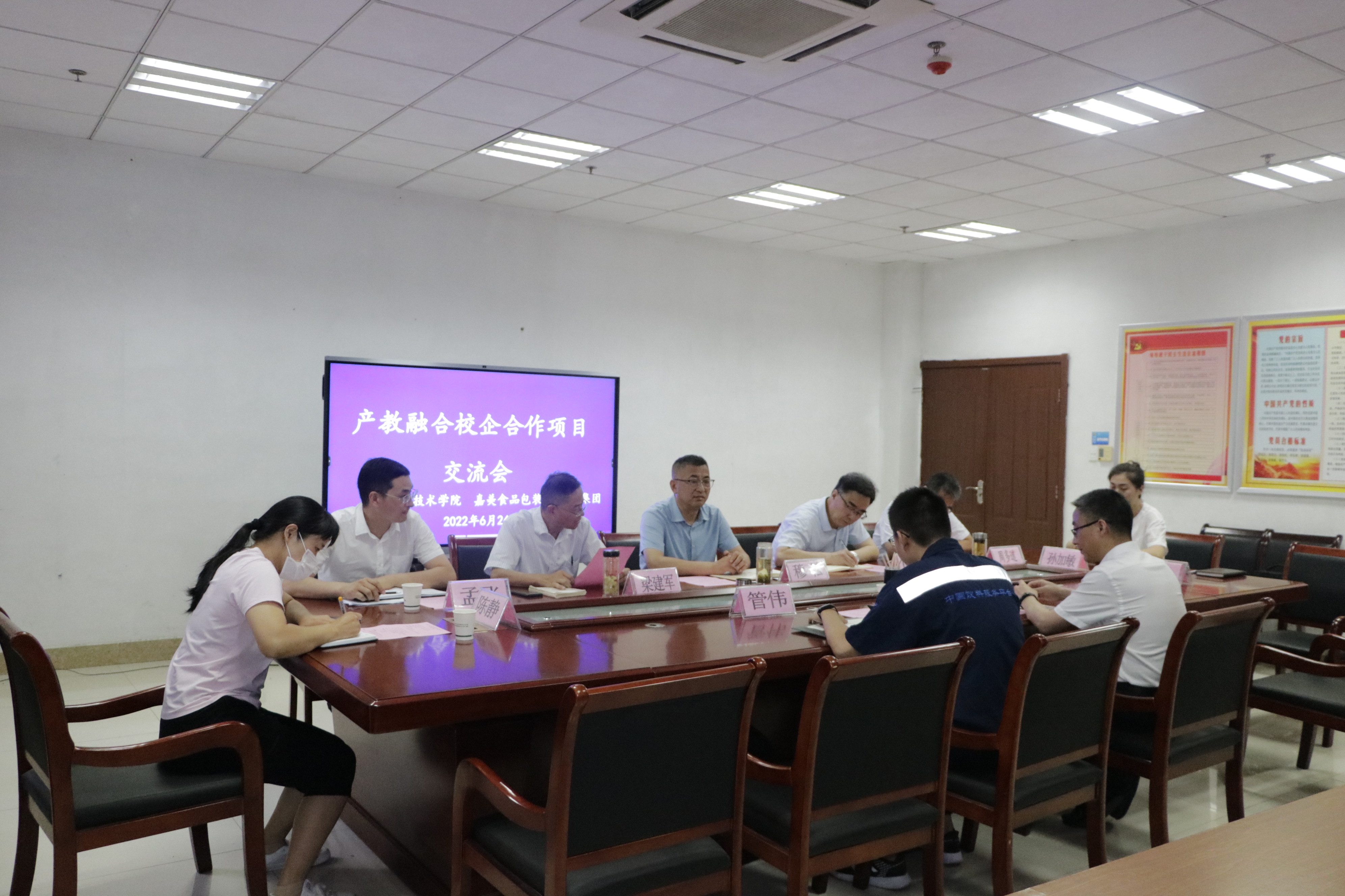 6月24日上午,Beat365在综合楼118会议室召开产教融合、校企合作项目交流会。校长助理、招生就业处处长、滁州职教集团秘书长穆松,食品与环境工程学院党总支书记陈震,招生就业处副处长、滁州职教集团副秘书长周多道出席了会议,嘉美集团生产行政总监沙荣、人力资源经理管伟作为企业代表应邀出席了会议。食品与环境工程学院及招生就业处相关人员参会,会议由食品与环境工程学院院长梁建军主持。