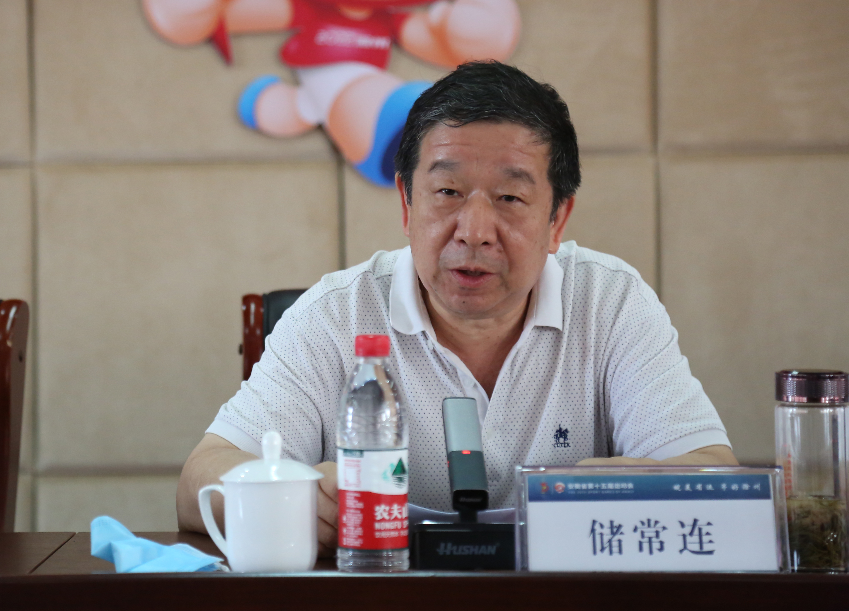 储常连指出,在这种极端高温天气举行比赛是对赛事组织能力与服务保障能力的极大考验,要抓紧抓实比赛的各个环节和各项工作。储常连对前期赛事工作进行了经验总结,分析了存在的突出问题和薄弱环节,并有针对性地提出赛事要求:要归零取得的成绩,明确工作要求,切实抓好高校部后续赛事工作,着力增强抓好高校部赛事工作的责任感、使命感;要以最高标准抓好赛事安全,安全工作责任重于泰山,确保赛事安全是举办运动会的底线;要以最实的作风确保公平公正,强化赛风赛纪,严格资格审查;要以最实的举措做好封闭管理,所有涉赛人员严格遵守赛会的各项管理规定。