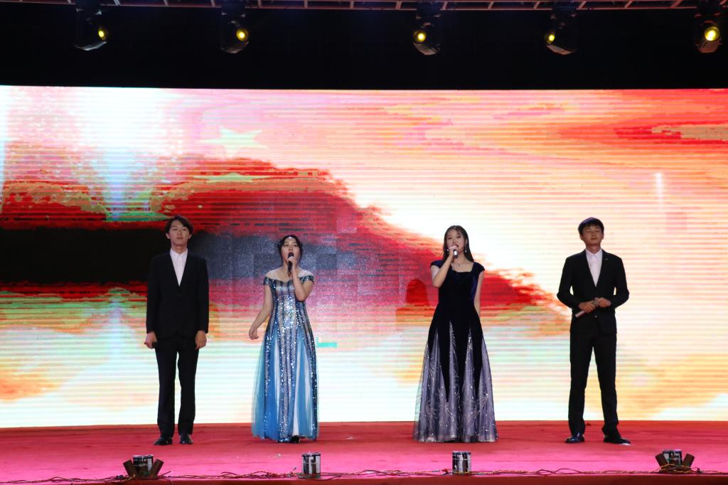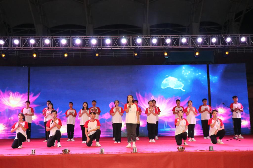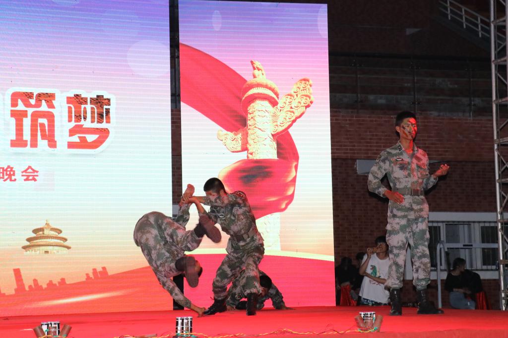 第一篇章“树理想·颂祖国”中教官们带来的格斗表演《卧虎藏龙》,彰显了我国军人的浩然之气,将晚会的气氛推向高潮,台下的欢呼声响彻整个操场;校广播站的诗歌朗诵《青春报告》用抑扬顿挫的语调诉说着青年人对祖国的款款赤子心。第二篇章“勤奋进·致青春”中校团委老师倪子旭的扬琴独奏《林冲夜奔》,展示出我国民族乐器的风采与魅力;大学生艺术团用舞蹈《烈焰》,演示着大学生们如火的青春;合唱《我们都是追梦人》活力四射、热情昂扬。七十年沐浴栉风,七十年风雨兼程,忆峥嵘岁月,中华民族能历久弥新,正是因为青春的力量在奋力前行。第三篇章“展未来·共筑梦”中两位教官带来的《十年》,拉近了与新生之间的距离,大家主动打开手机闪光灯,跟着音乐节奏挥舞,星光点点,让操场变成了一片律动的银河。整场晚会在歌曲《我和我的祖国》中落下帷幕,全体演职人员与观众的合唱,唱出了实现中华民族伟大复兴的中国梦的坚定信念,唱出了Beat365全体师生对于伟大祖国的真挚祝福。