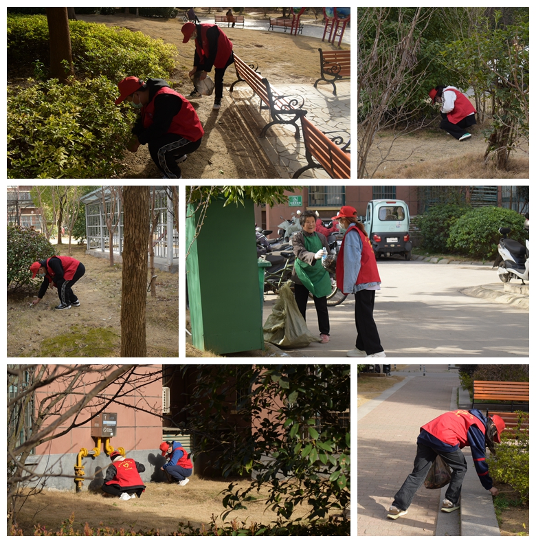 活动中,志愿者拿着清洁工具,有条不紊地分工协作,在社区内进行着“地毯式”的搜索。他们对社区内的卫生死角、绿化带进行了了彻底的清扫,细心地翻捡着埋藏在绿化带中的枯草、烟头、塑料袋、饮料瓶等固体垃圾。捡拾活动中,有不少群众驻足,大家又不失时机的对过往居民进行保护环境、保护绿色的重要性,倡导大家爱护自然,争当文明风尚的传播者和实践者。经过两个小时的劳动,社区被打扫的干干净净,环境焕然一新。