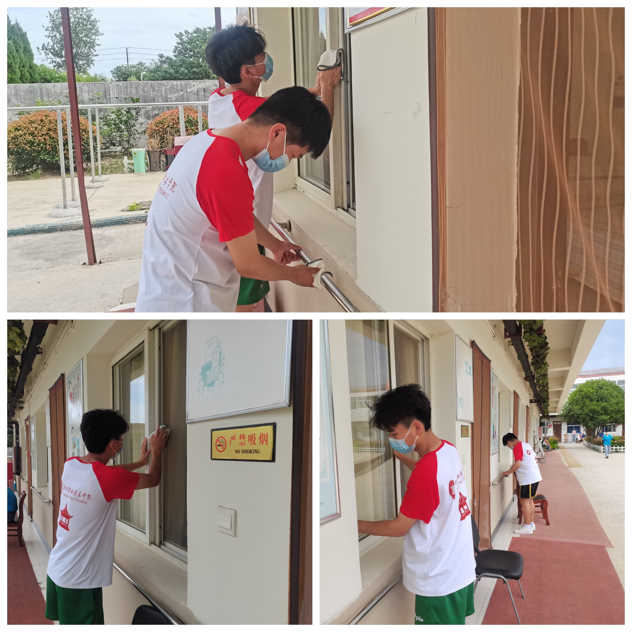 一到敬老院,朱睿老师把同学们的任务安排和分配好。活动中,有的同学们擦拭房间门外的扶手,有的认真地捡拾楼院里的垃圾,养老院的各个角落都能看到同学们忙碌的身影。有的同学陪老人聊天,给老人剪指甲,嘘寒问暖,幸福的笑容洋溢在每一位老人的脸上。同时,同学们还将精心选购的牛奶、面包等慰问品亲手送到老人们手中。