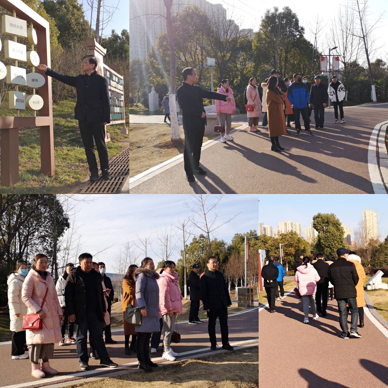 在校党委委员、马克思主义学院院长、党支部书记王冬的带领下,全体党员教师漫步公园,依次参观宪法知识宣传长廊和依法治国进程图片展示,中途进行趣味性法治谜语竞猜等活动。党支部宣传委员陈琴老师担任本次支部思政课教师法治实践课讲解员,将宪法主题公园的展览与《思想道德与法治》第六章第三节“维护宪法权威”知识点相结合,使全体党员教师受益良多。