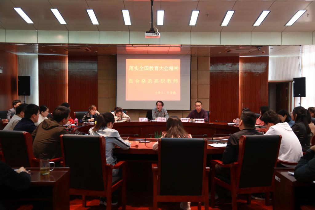 10月16日下午,学校2019年新入职教师校本培训系列讲座首场在综合楼11楼报告厅举行,校党委副书记、校长许雪峰作“落实全国教育大会精神,做合格的高职教师”的专题讲座。学校近两年新入职教师共同聆听了讲座。讲座由校党委委员、组织人事处处长李超主持。