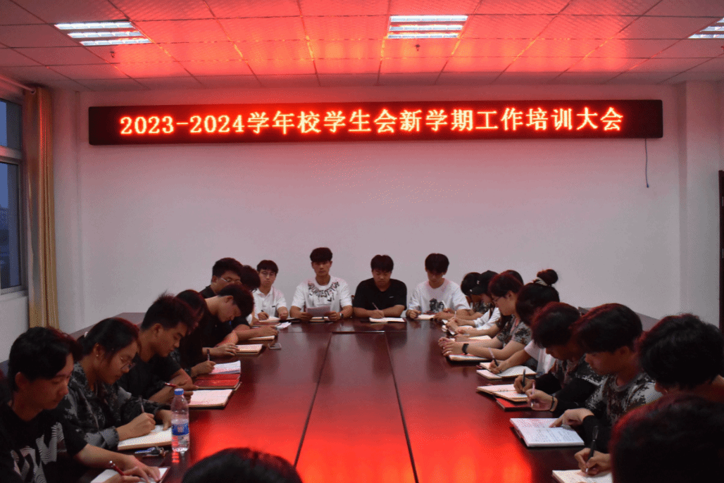 2023年9月4日,校学生会在317会议室召开了新学期第一次工作培训大会。会议由校学生会指导教师陈苗主持,团委教师张姗姗、张忠、王琳以及全体大二干事参加。