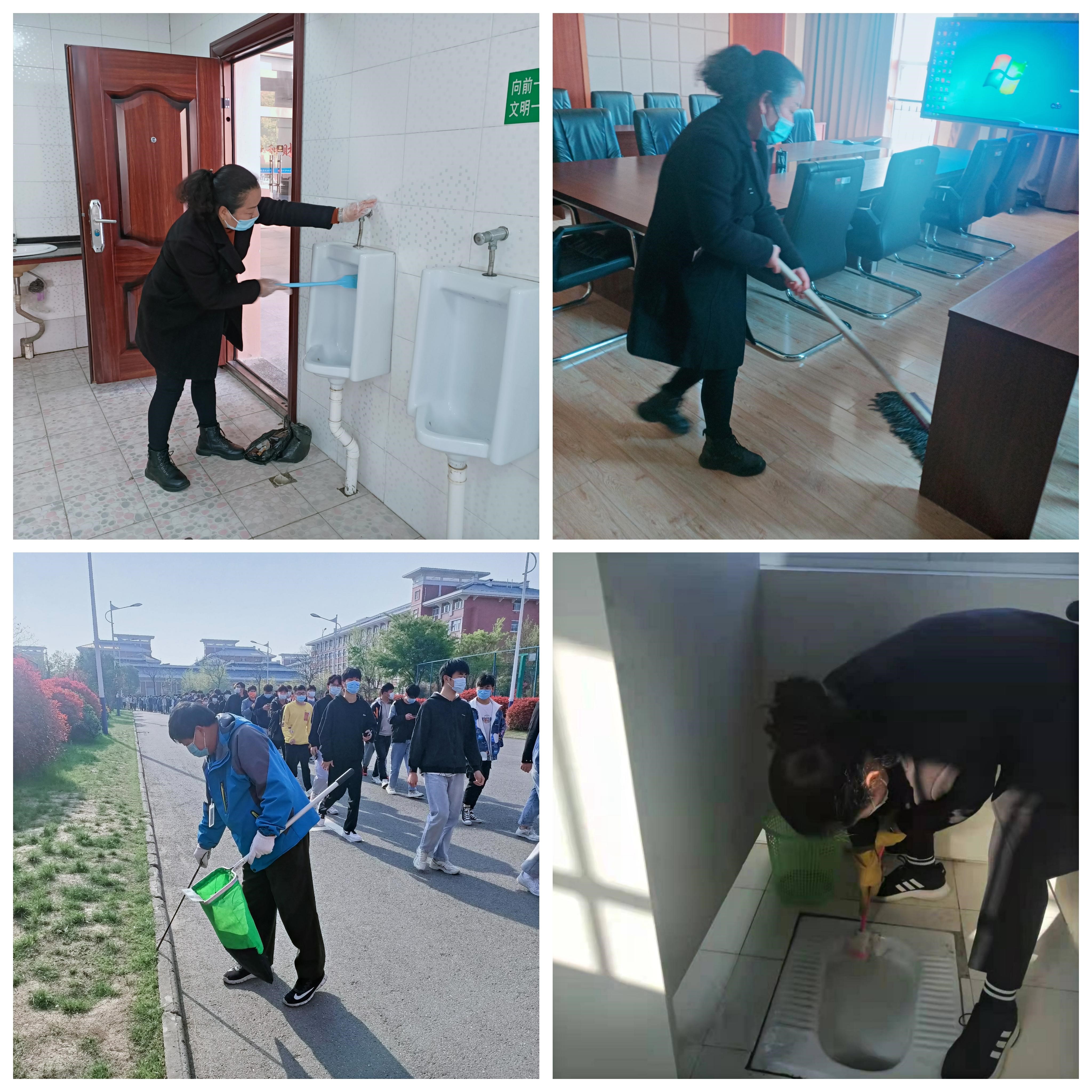 在疫情防控特殊时期,为了消除病毒隐患,阻断疫情传播途径,在做好日常环境清洁的基础上,宿管和保洁员们坚持每天两次对公寓大厅,宿舍楼道、楼梯,教学楼、办公楼和其他公共区域进行消杀,不留死角,不留盲区,并及时填写消毒记录,由专人进行监督检查,确保工作落实到位。每日及时清理校内垃圾到指定地点,加强送运工作,全方位保障疫情期间校内环境卫生安全。