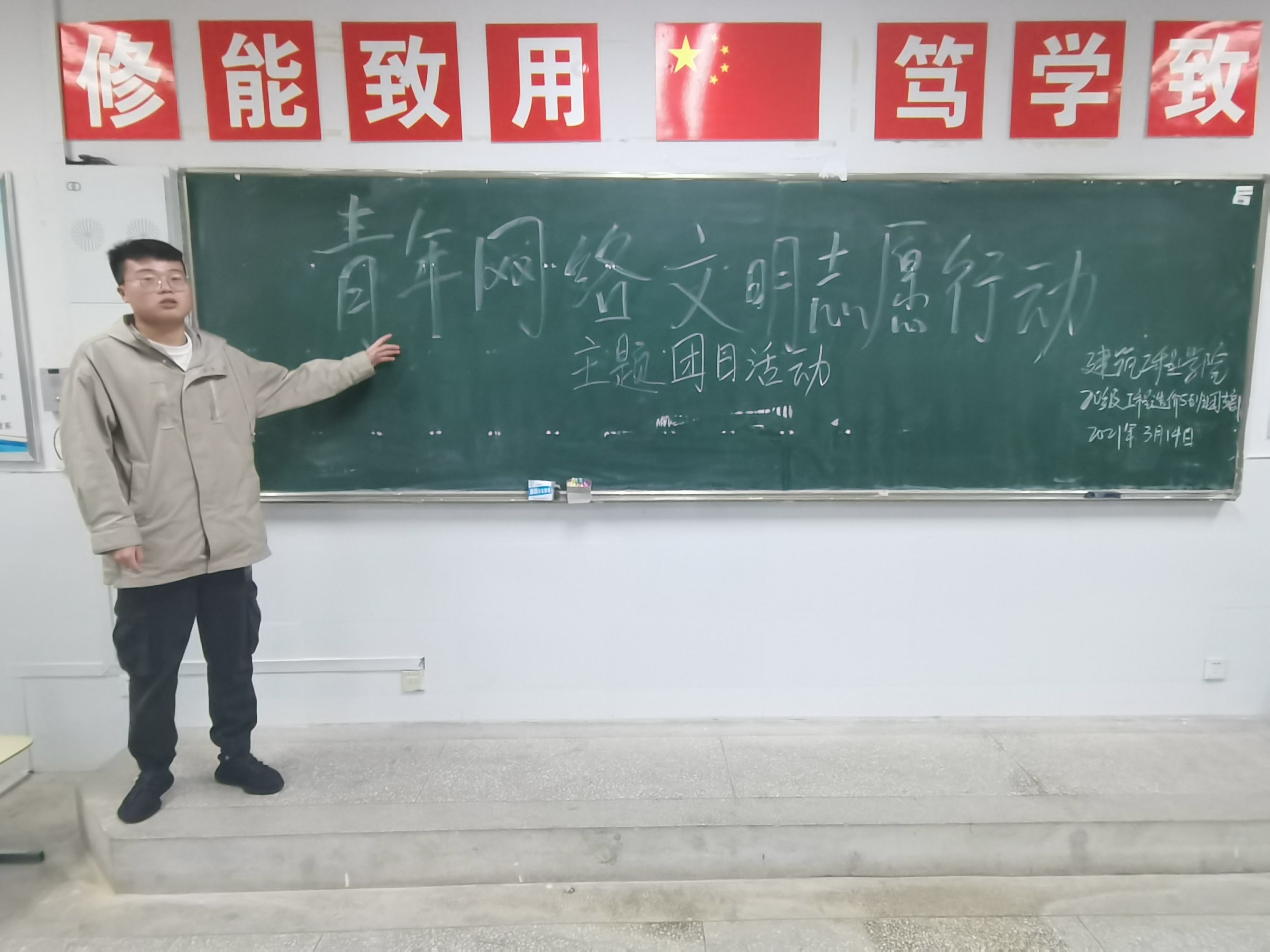 为营造文明网络空间,动员广大团员青年参与清朗网络建设,提高广大团员青年依法上网、文明上网、理性上网的意识,构建和谐网络环境,争当“中国好网民”,传播“青年好声音”。3月12日-24日,建筑工程学院团总支组织开展“青年网络文明志愿行动”系列主题团日活动。