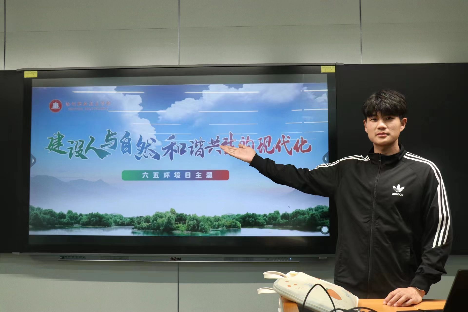 校团委在世界环境日当天,开展了“建设人与自然和谐共生的现代化”为主题的环保课题,形象地讲解了世界环境日的由来、认识我们的地球、保护环境的重要性及当代青年如何做等四个主题。引导青年学子树立“尊重自然、顺应自然、保护自然”的生态文明理念,自觉从自身做起、从生活中的点滴做起,做积极参与环境保护的行动者。