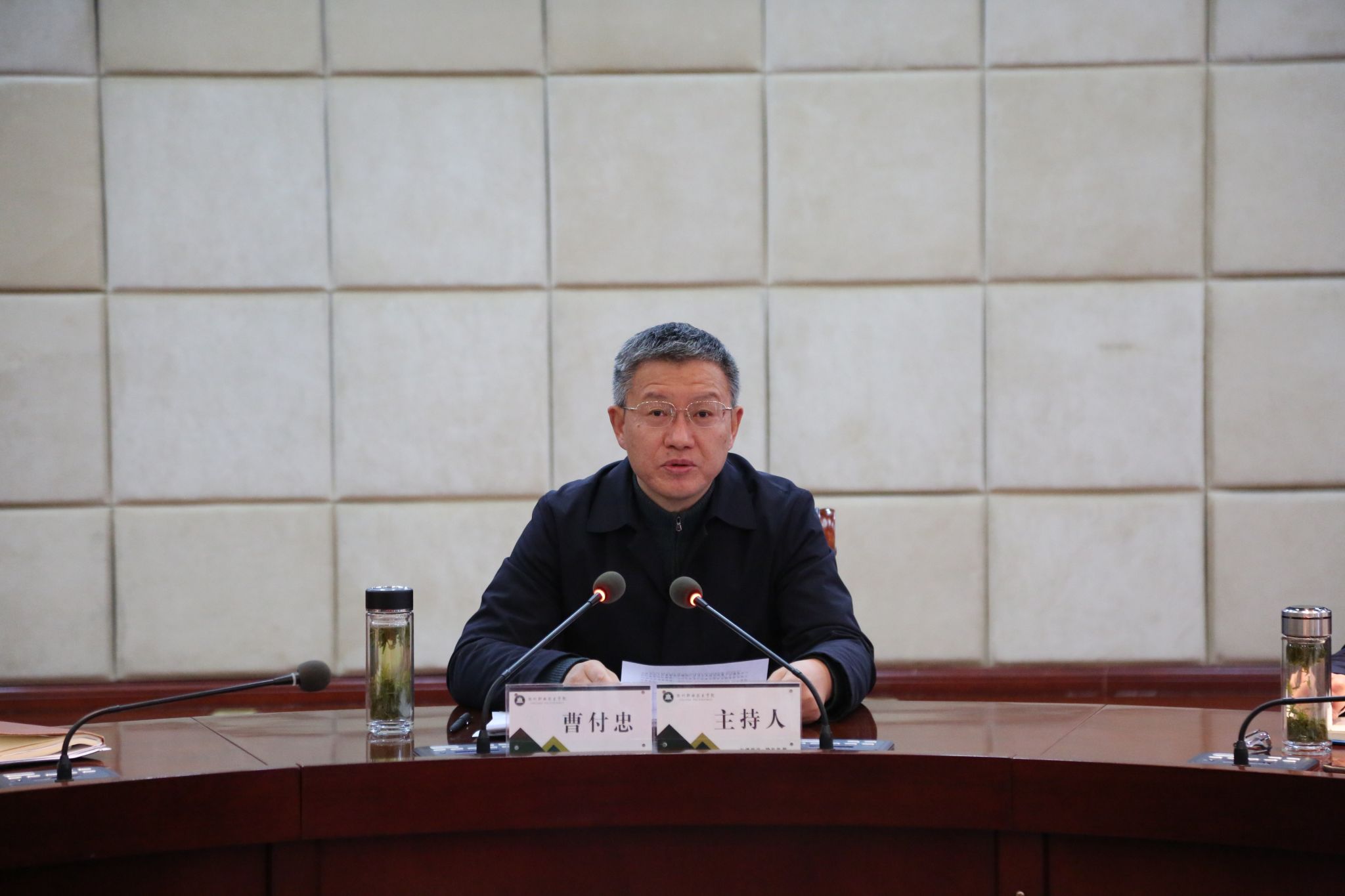 12月26日上午,学校在综合楼1102会议室召开党委理论学习中心组(扩大)学习会议,校党委书记曹付忠主持会议并讲话。校党委副书记、校长许雪峰,校党委副书记杨家庆,校领导江洁、孙静、苏有良、胡凼、李平权、李超、王冬、王宇、穆松,各教学院部、各部门主要负责同志和列席中心组学习会议的有关负责同志出席会议。