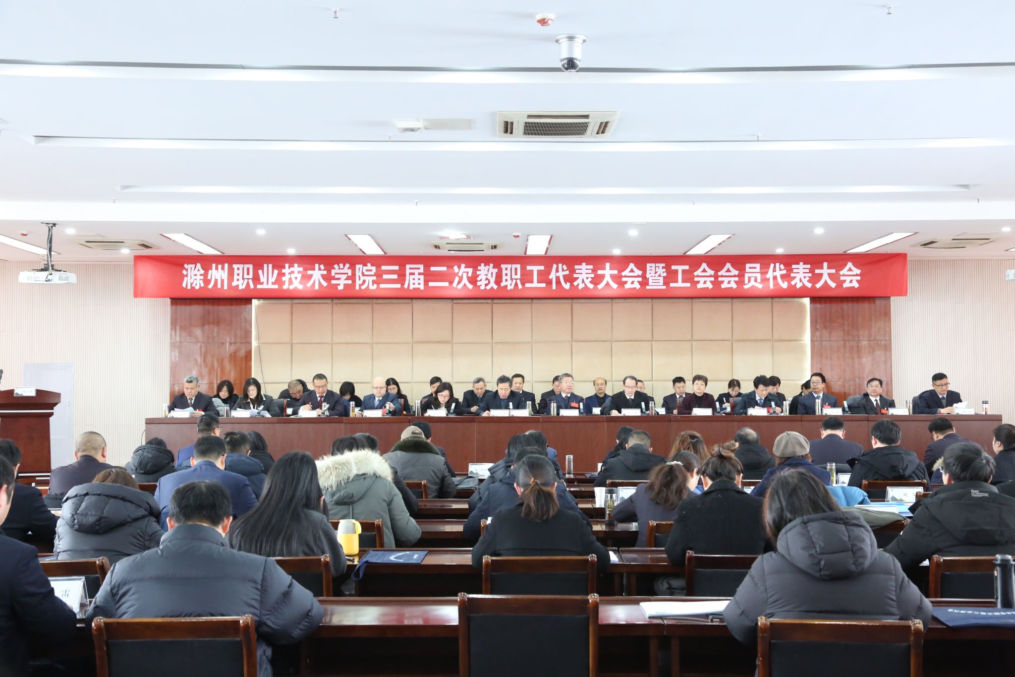 2月23日上午,Beat365在综合楼5楼报告厅召开三届二次教职工代表大会暨工会会员代表大会。校党委书记曹付忠,校党委副书记、校长许雪峰,校党委副书记杨家庆,校领导江洁、孙静、苏有良、胡凼、李平权、李超、王冬、王宇、穆松、陈学军出席会议。各正式代表、列席代表、特邀代表参加了会议。大会由杨家庆主持。
