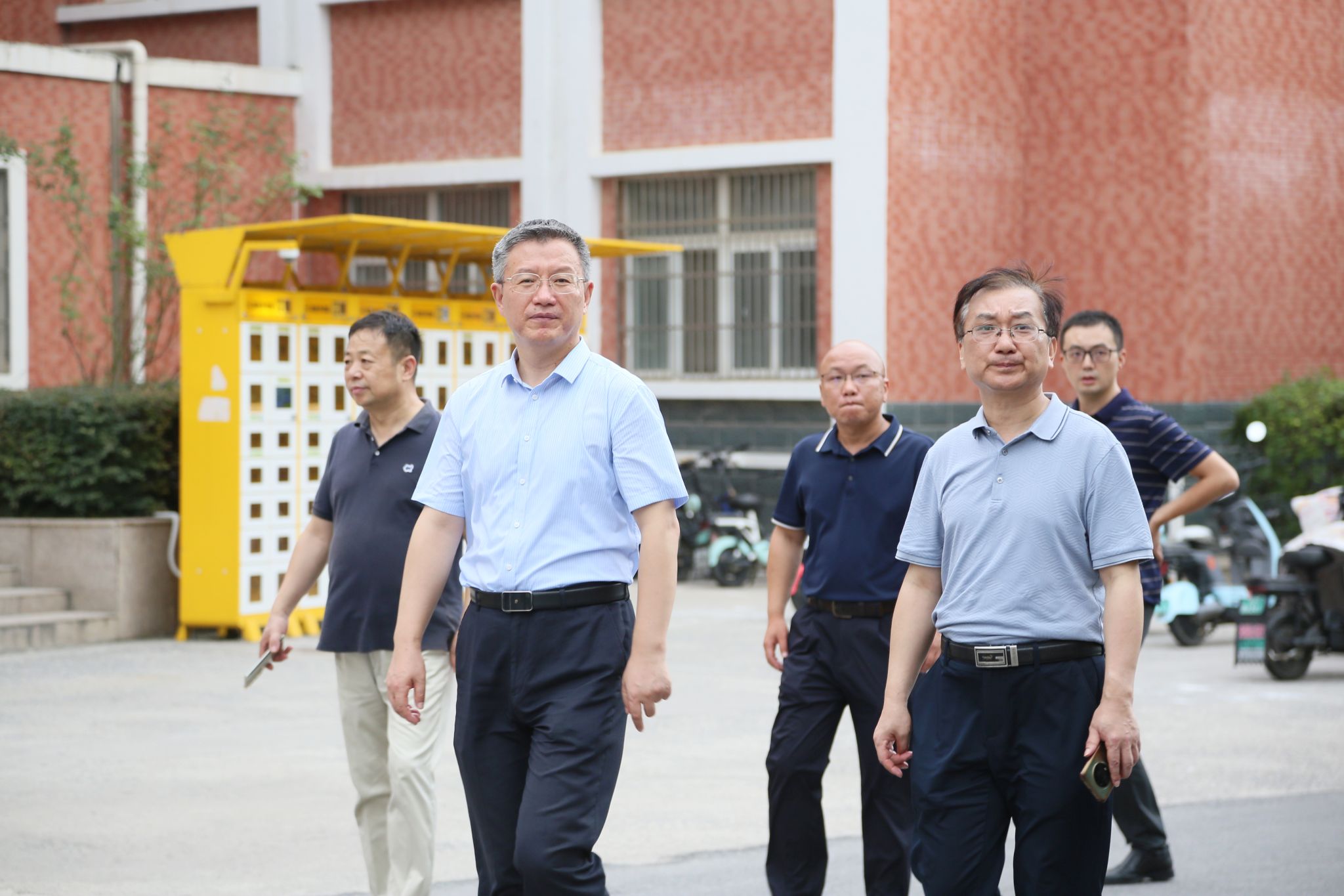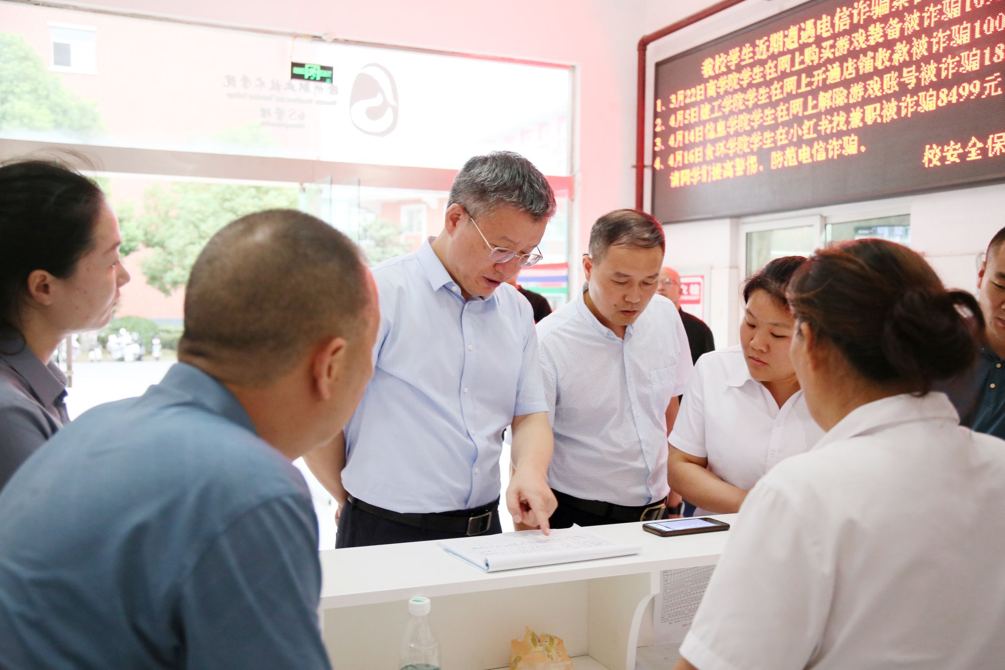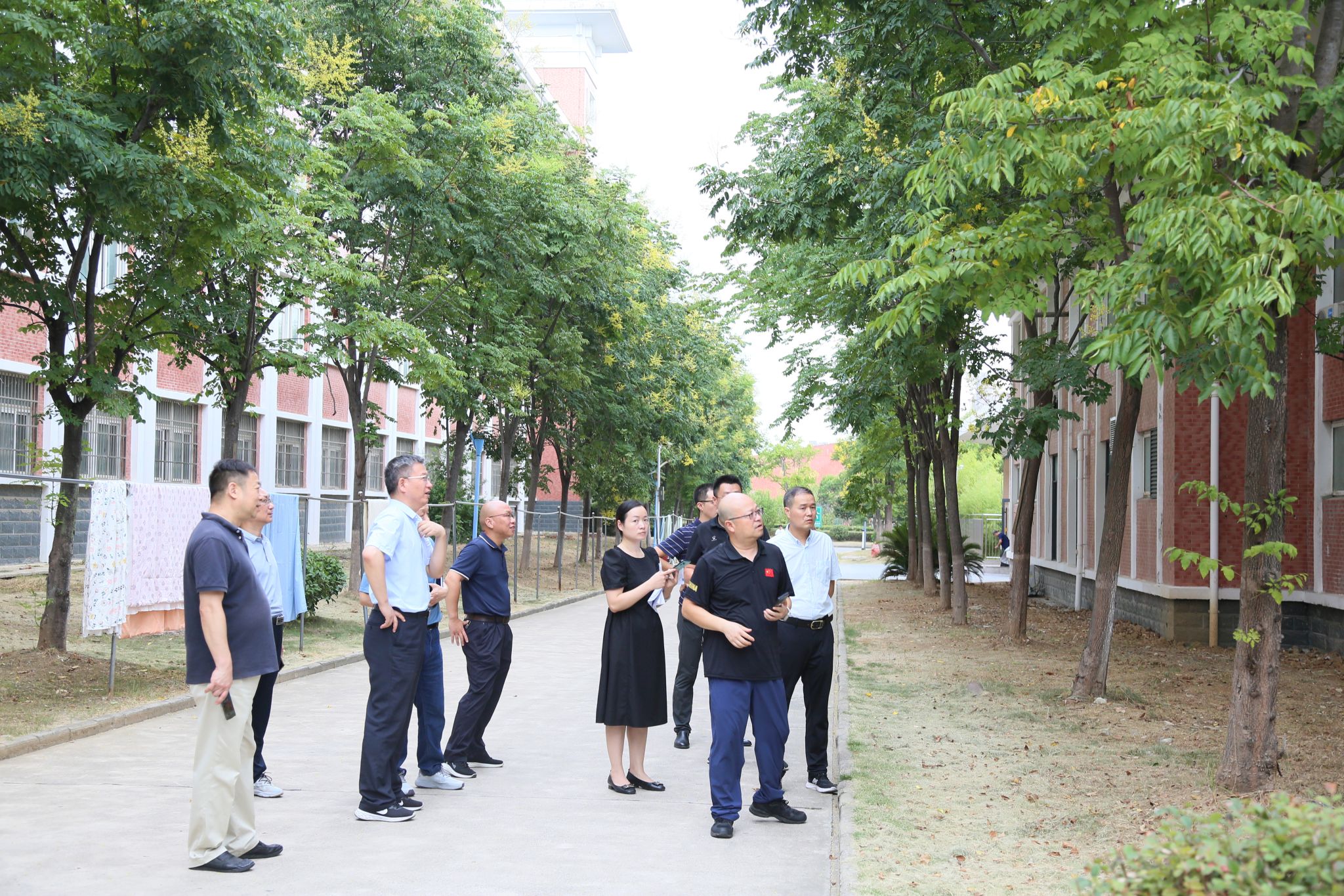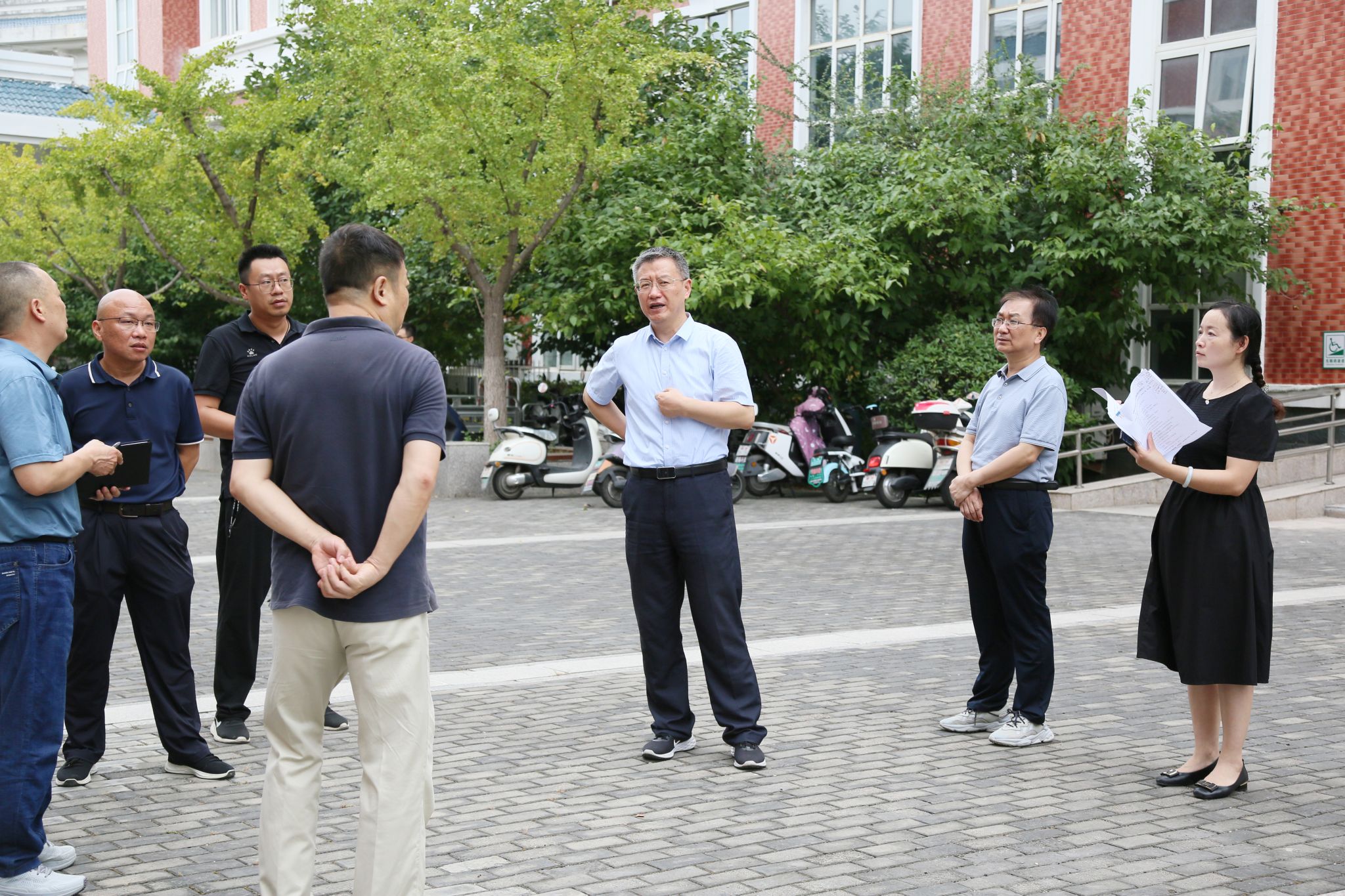 曹付忠一行实地察看了东西大门、和乐广场、教学楼、体育馆、学生浴室、学生宿舍区、超市、快递点等学校重点区域,对前期校园安全管理及文明创建整改情况进行检查验收,并就下一步工作提出指导意见。