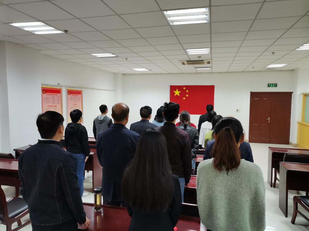 会前,全体思政理论课教师面对国旗,伴着音乐唱《国歌》。