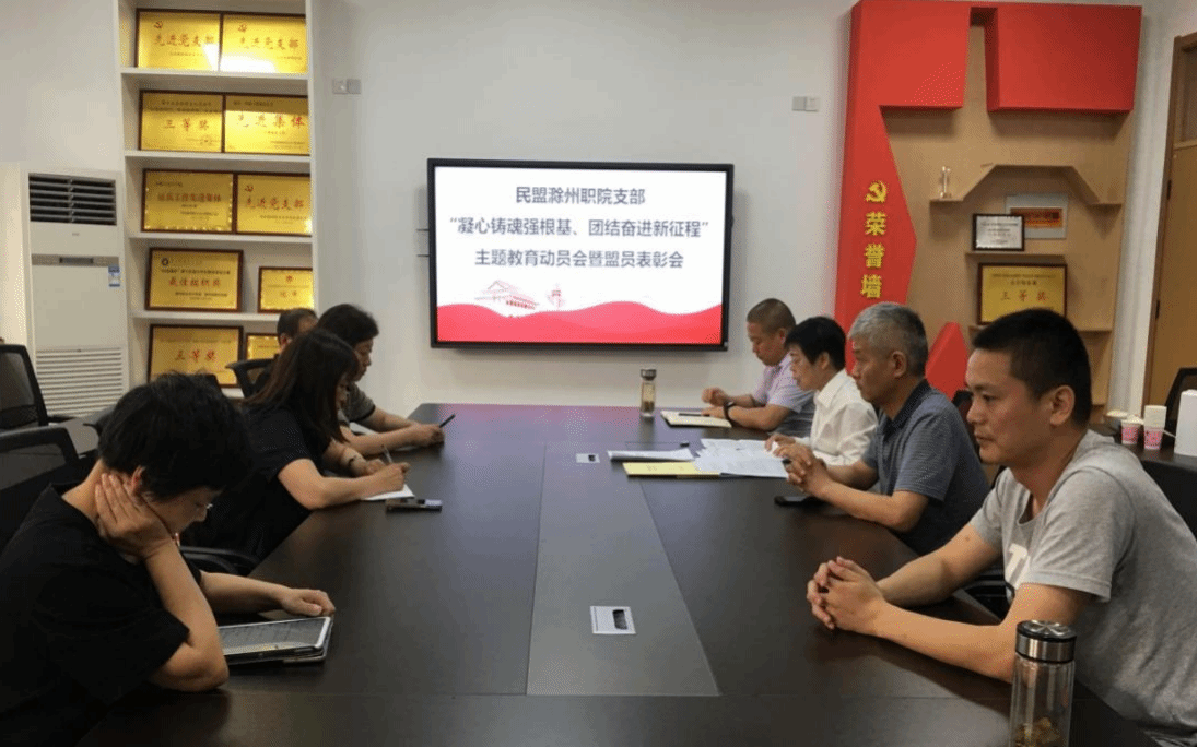 6月14日下午,民盟Beat365唯一官方网站支部(简称“民盟滁州职院支部”)在Beat365传媒与设计学院会议室召开“凝心铸魂强根基、团结奋进新征程”主题教育动员会暨盟员表彰会。会议由民盟滁州职院支部主委陶会平主持,支部全体盟员参加了此次会议。