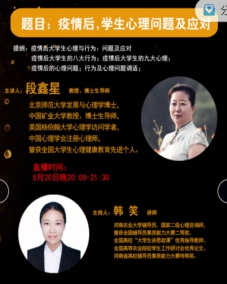 本次培训内容针对学生返校后疫情防控和心理健康而设计,紧紧围绕着返校后校园安全防控、危机事件处理能力提升、返校后学生一般性心理问题的应对方法、辅导员的情绪压力管理等相关内容。多位有着丰富一线工作经验的知名专家、学者讲授线上培训课程,主讲人有省内外知名教授、学者,有富有多年一线学生工作经验的实战型学者,有掌握疫情防控相关知识的疫情防控专家。本次培训内容重点讲授了高校学生返校后的如何有效开展好安全防控工作,如何有效建立学校——院系——班级——宿舍四级防控预警体系,返校后面对学生一般性心理问题如学业压力、就业焦虑、人际障碍等问题,校心理健康中心教师和院部心理辅导员如何有效的开展一对一的心理咨询、如何做好心理干预等。这些正是作为心理教师、辅导员、班主任等一线教育工作者,在当下日常工作中所面临的紧迫、亟待解决的学生问题。专家们进行深入解析,既有理论上的观点,又有现实中的案例剖析,对于开展好一线学生工作具有很强的操作性。