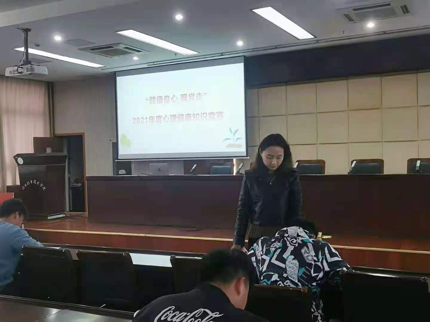 随着社会的发展,大学生的心理健康问题日益突出,为了引起学生对心理健康问题的重视,四月二十一日,由学生工作处健康教育科主办的,“健康身心 跟党走”2021年度心理健康知识竞赛在Beat365行政楼五楼举行。学生工作处健康教育科冯研老师、心理协会部分成员及参赛学生参加了此次活动。