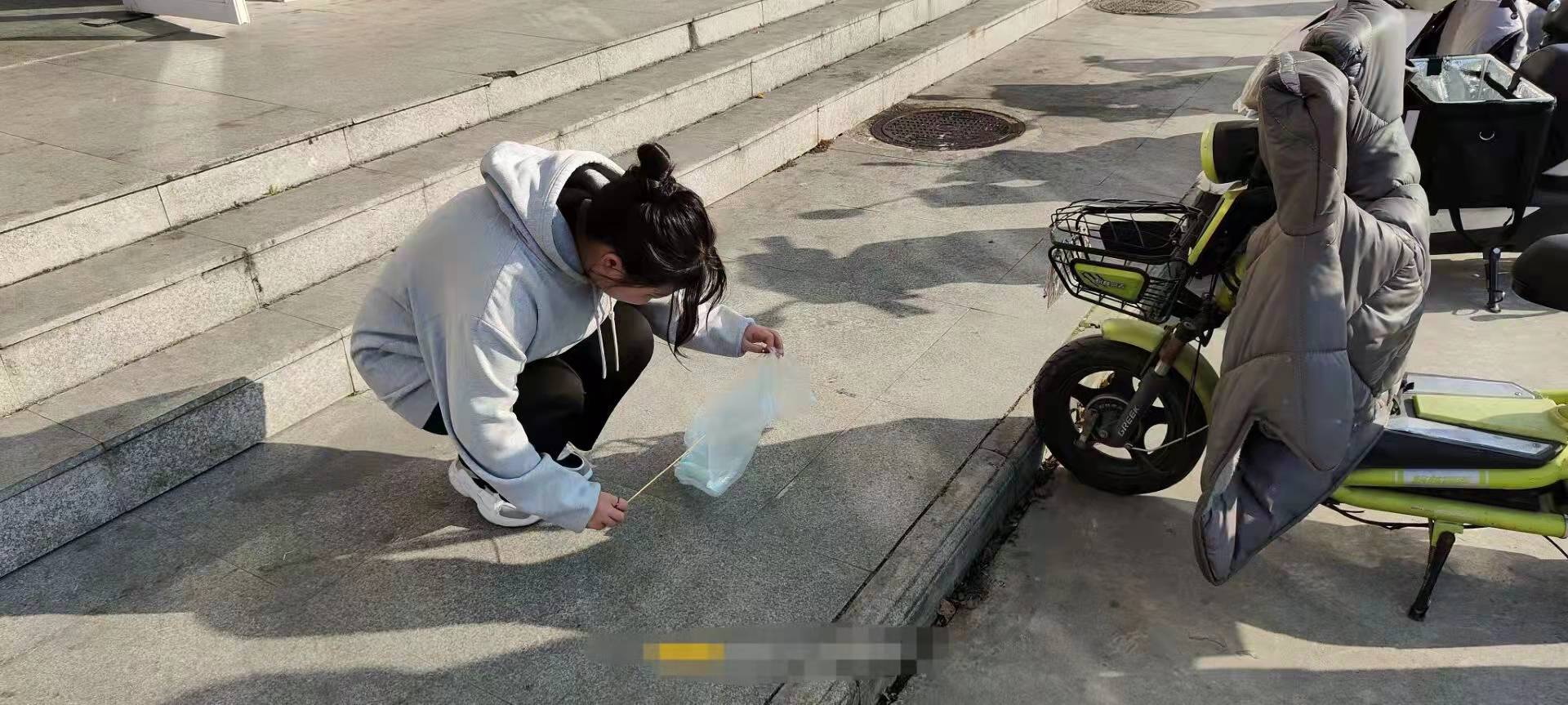 奉献是不计报酬的给予,是“有一分热放一分光”,是“我为人人”。活动中,学生干部卖力清扫,冻僵的手不停的戳着,但手中的清扫工具不见停歇,满身是汗的他们牢记“有一分热放一分光”、“我为人人”的理念,将路上的垃圾认真清扫、路边的电动车按点摆放。
