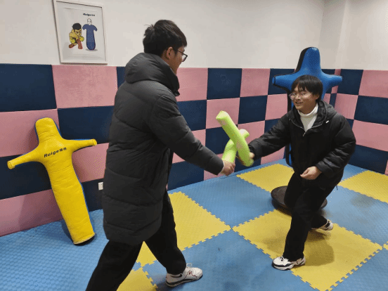 活动中,前来体验的同学学习了各种宣泄设备的使用方法及注意事项,通过喊叫、击打、对打等方式,把心中不愉悦和负面情绪全部宣泄,从而获得心灵上的放松。