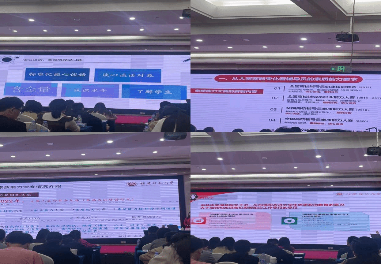此次研修中,Beat365辅导员认真聆听学习了来自广东技术师范大学陈小花教授、沈阳工业大学党委学生工作部部长李青山等六名专家专题讲座。大家积极结合工作实际,围绕辅导员技能比赛的基础知识测试、案例研讨、谈心谈话等环节始终认真学习,拓宽视野,巩固和提升业务技能水平。