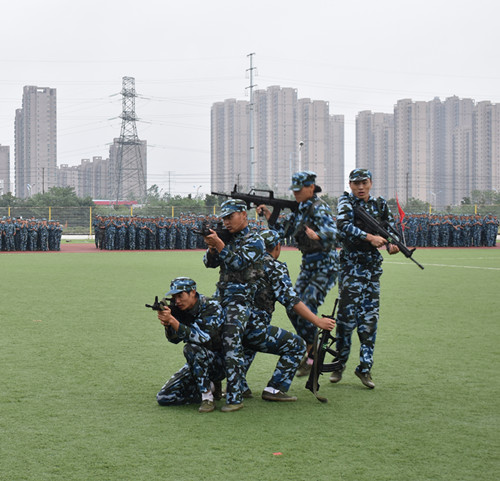 军训科目汇报表演开始,同学们个个精神饱满昂首挺胸,口号嘹亮,令人振奋,每个方队迈着整齐的步伐,以标准的动作、威武的气势展示了此次军训的成果。充分展现了2016级新生的精神风貌,他们的精彩表演赢得了大家的阵阵掌声。闭营结束时,同学们向我们表演了举枪、棍棒、男子战术、女子防狼术等,告诫我们大学生要坚持锻炼,磨炼意志品质的。整齐的队伍、坚定的步伐、嘹亮的口号证明,同学们经受了军人的洗礼,教官和老师们脸上的笑容证明,同学们圆满完成了军训任务。