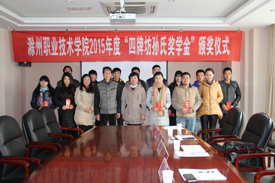 据悉,2015年度“孙氏奖学金”评选经过系部初评、民主推荐、学生处初审,并报学院会同孙氏集团研究,最终确定由吴瑞等11名同学获得。