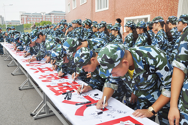 活动伊始,滁州军分区政治部主任周铧大校发表讲话,周铧分析了当前国内国际形势,从政治、军事、经济等各个方面,阐述了增强防范意识的重要性与紧迫性。同时,周铧利用现场展出的多块展板,采取现场讲解的方式,为全体学生上了一堂深入浅出、形象生动的国防教育课。随后,同学们纷纷在宣传横幅上签名,用实际行动响应号召,提高国防安全意识。