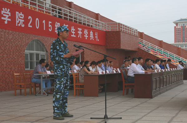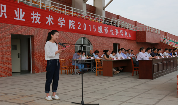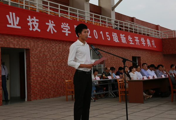 典礼上,教师代表、经济贸易系辅导员伍媚,在校学生代表、机电工程系2013级机电一体化专业张子帅,新生代表、土木工程系2015级建筑工程技术专业史玖一分别作了发言。