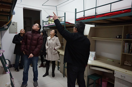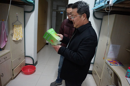 寒冷的冬天已到,为进一步营造良好的学习氛围, 培养良好的生活习惯,2014年12月3日下午经贸系党总支副书记陈开兵及各班级辅导员,深入学生宿舍,对宿舍卫生、用电安全进行全面检查。