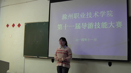 此次比赛的参赛选手以旅游管理专业的2013级和2014级学生为主。比赛要求各参赛选手进行5分钟左右的导游讲解,内容不限,并进行导游基础知识问答。评委们不仅要在选手中进行讲解技巧的评测,更要考查选手的专业基础知识与应变能力,最后围绕景点讲解、导游规范、应变能力、着装礼仪、基础知识和语言表达能力等五个标准对选手表现进行评分。经过一个小时的角逐,最终确定一等奖1名,二等奖2名,三等奖3名,其中,2013级旅游管理班学生储艳婷以富有个人特色的导游词、自然流畅的讲解、娴熟流利的应答表现摘得桂冠;刘芳菲、杨梦如、于孟孟、赵丹丹、吴云云等五名同学分获二、三等奖。