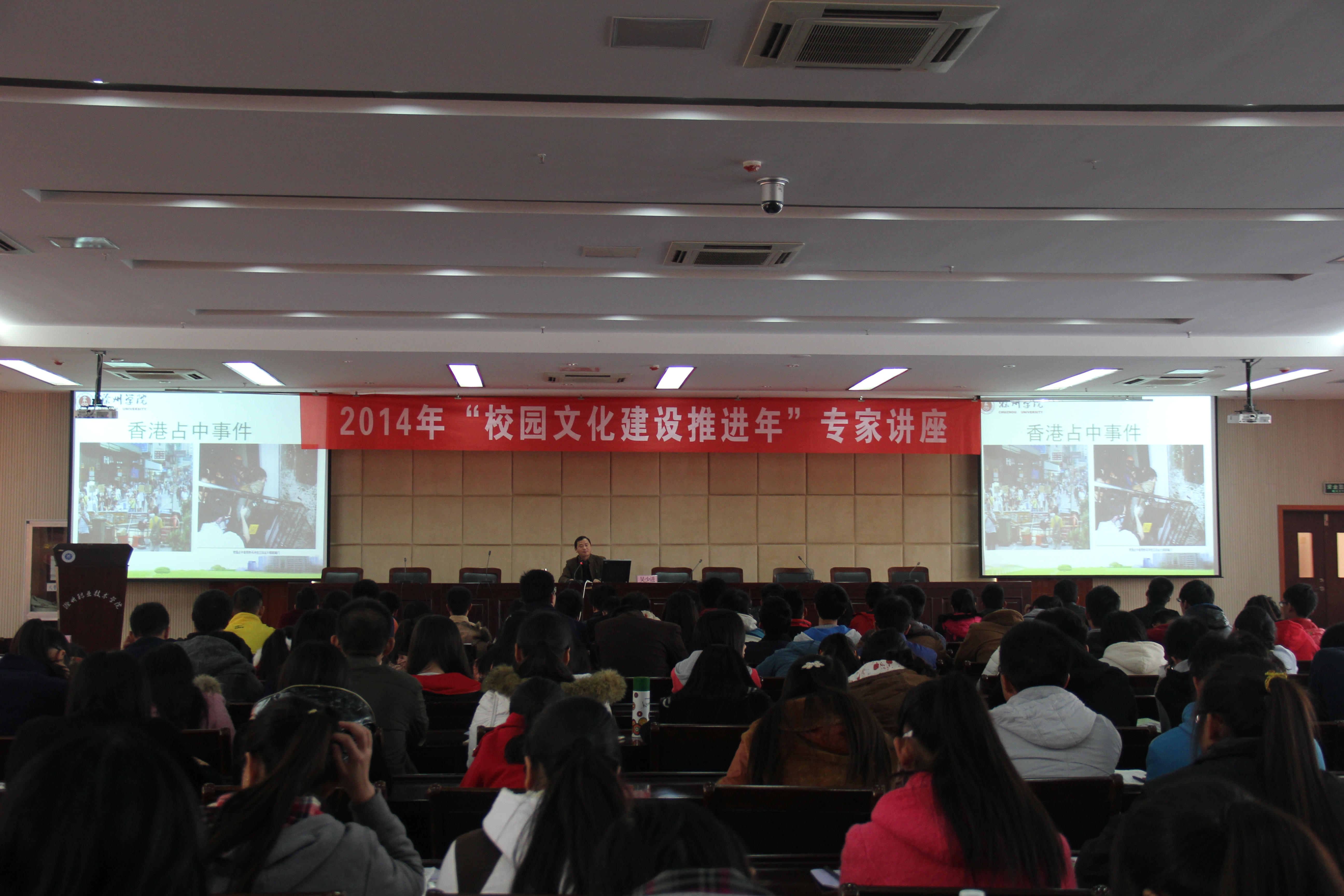 11月19日下午,滁州学院思政部副教授吴少进博士应邀来院作“社会主义核心价值观”主题讲座。讲座在五楼学术报告厅举行,共260名学生代表聆听了此次讲座。学生处副处长张军主持讲座。