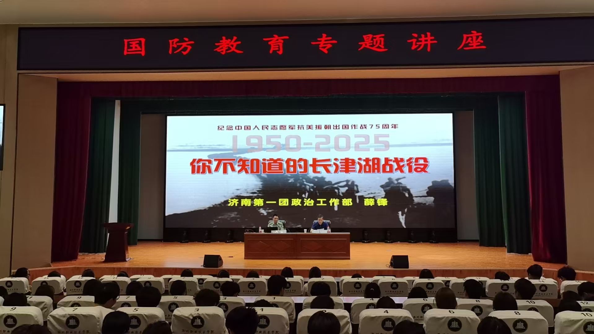 薛锋以《你不知道的长津湖战役》为题,围绕抗美援朝中的长津湖战役,通过丰富的历史文献资料,旁征博引、深入浅出地从长津湖战役的历史背景、起因、经过、结果与历史影响等多个方面生动而富有激情地宣讲红色故事、家国情怀,与现场同学进行互动交流,带领同学们走进英雄,走进他们坚强的作战意志、大无畏的革命精神、深厚的爱国主义情怀,引领同学们在坚定理想信念、传承红色基因中赓续红色血脉、凝聚奋进力量。