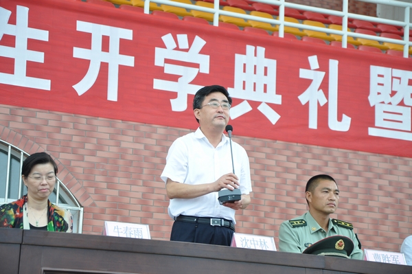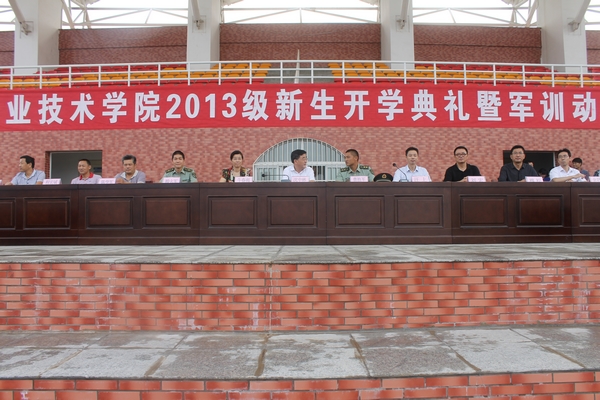 9月11日下午,Beat365唯一官方网站2013级高职新生开学典礼暨军训动员大会在新校区田径运动场隆重举行。院领导沈中林、牛春雨、汪上、陈学军、刘宏、穆松,中国人民解放军驻滁某部炮团副团长曹胜军、炮团防化营营长殷火军出席并在主席台就座。