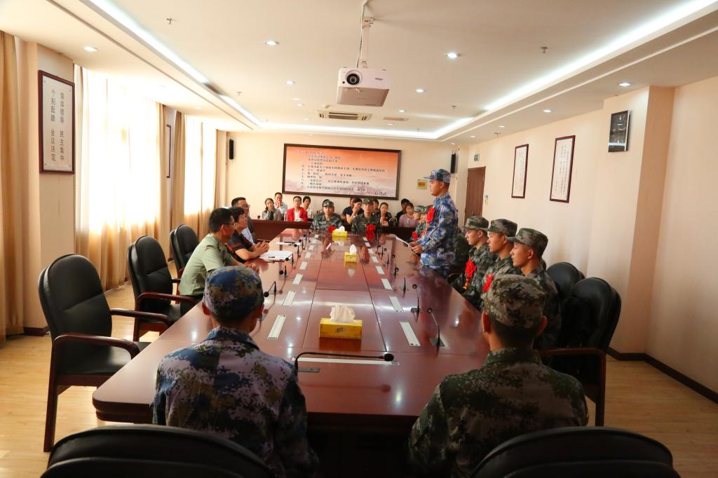 9月9日下午,学校在904会议室召开2018年入伍新兵欢送会。即将走进军营的12位新兵身着军装,胸带大红花,和部分参会家长齐聚一堂,校党委副书记刘树俭、学生处处长李平权、征兵干事常乐到会为同学们送行,仪式简短而庄重。