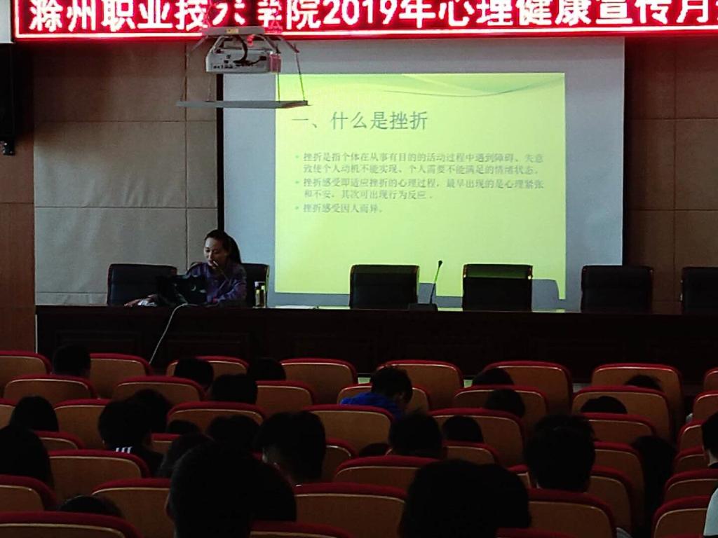 下午,学校心理健康教育中心的冯研老师在学校南阶205教室给学生们做了《挫折心理》的专题讲座。