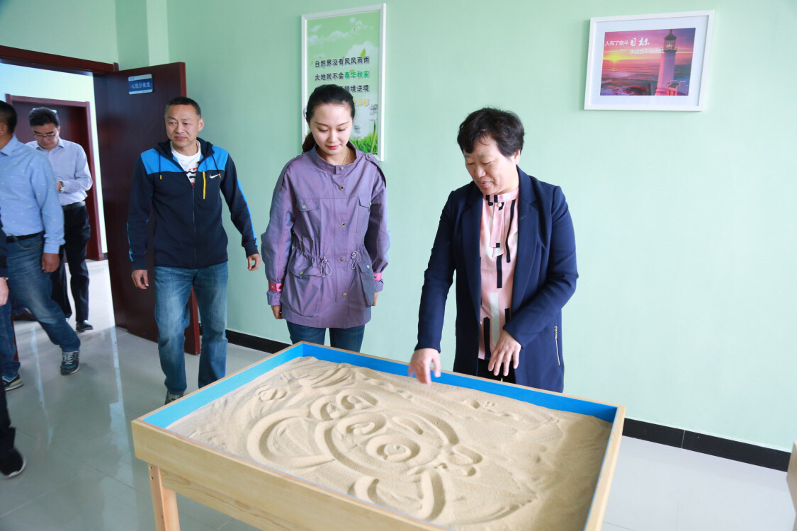 揭幕后,刘树俭书记及各位系部书记参观了新的心理健康教育中心。大学生心理健康教育中心负责人冯研老师向大家逐一介绍了心理接待室、心理沙盘室、个体咨询室、团体督导室、团体辅导室和心理宣泄室的功能及相关心理健康服务系统。其后,刘书记向中心受聘兼职心理咨询教师颁发聘书。